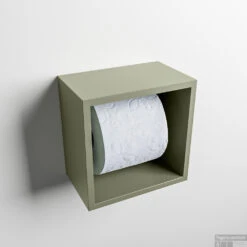 MONDIAZ Easy Toiletrolhouder CUBE 160 Solid Surface 16×8,6cm Kleur Army. Geschikt Voor Op En Inbouw.