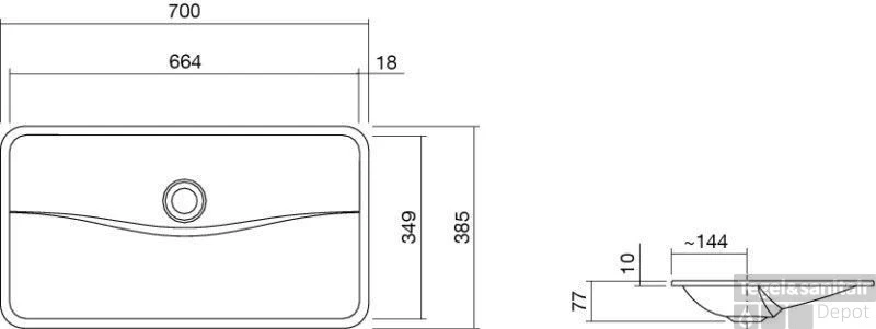 Inb.wastafel 70×38.5 zonder kraangat/overloop clea