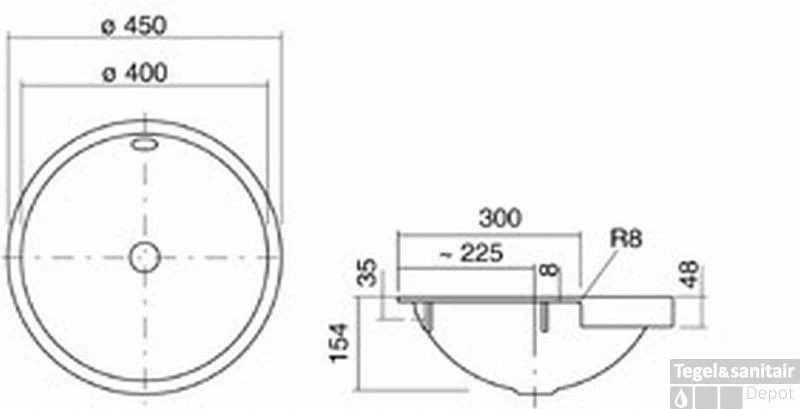 Alape Hb Serie Halfinbouw Wastafel 45 Cm. Rond Wit