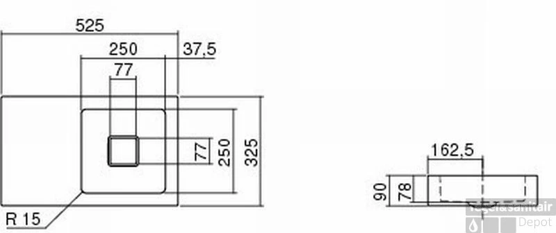 Wastafel 52,5×32,5 cm. rechts