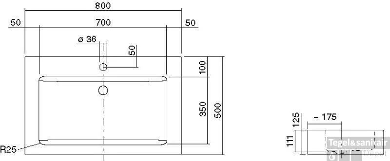 Wastafel 80x50x12,5 cm. incl.bev.z/overloop