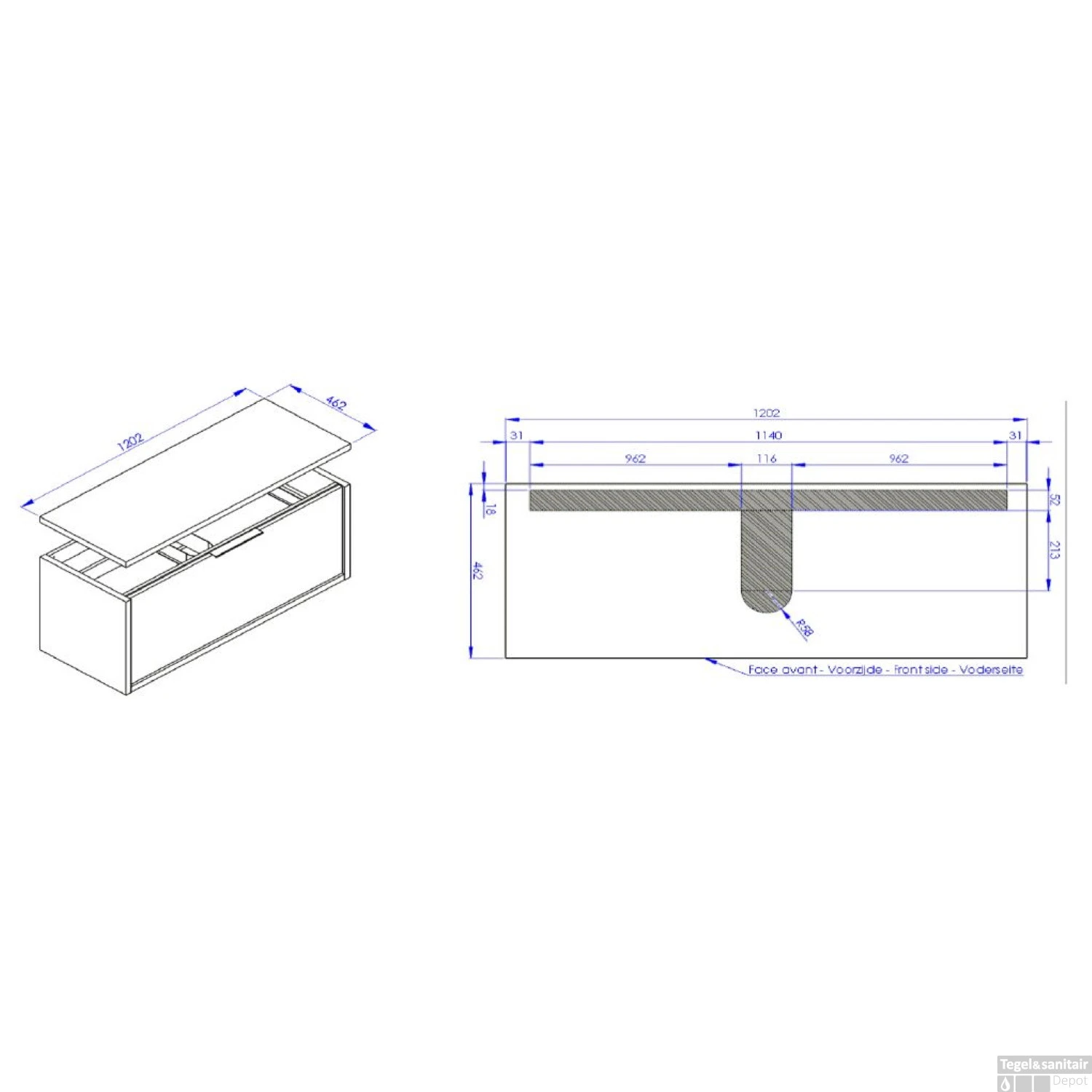 Het Sorento wastafelonderblad is van het populaire merk Allibert. Het blad heeft een warme look in de kleur eiken cognac. Het wastafelblad is uitstekend geschikt in combinatie met een opbouw waskom. De breedte van het blad is 46 cm, de lengte 120 cm en de dikte bedraagt 28 mm. Het Sorento wastafelblad is vervaardigd uit het materiaal spaanplaat.