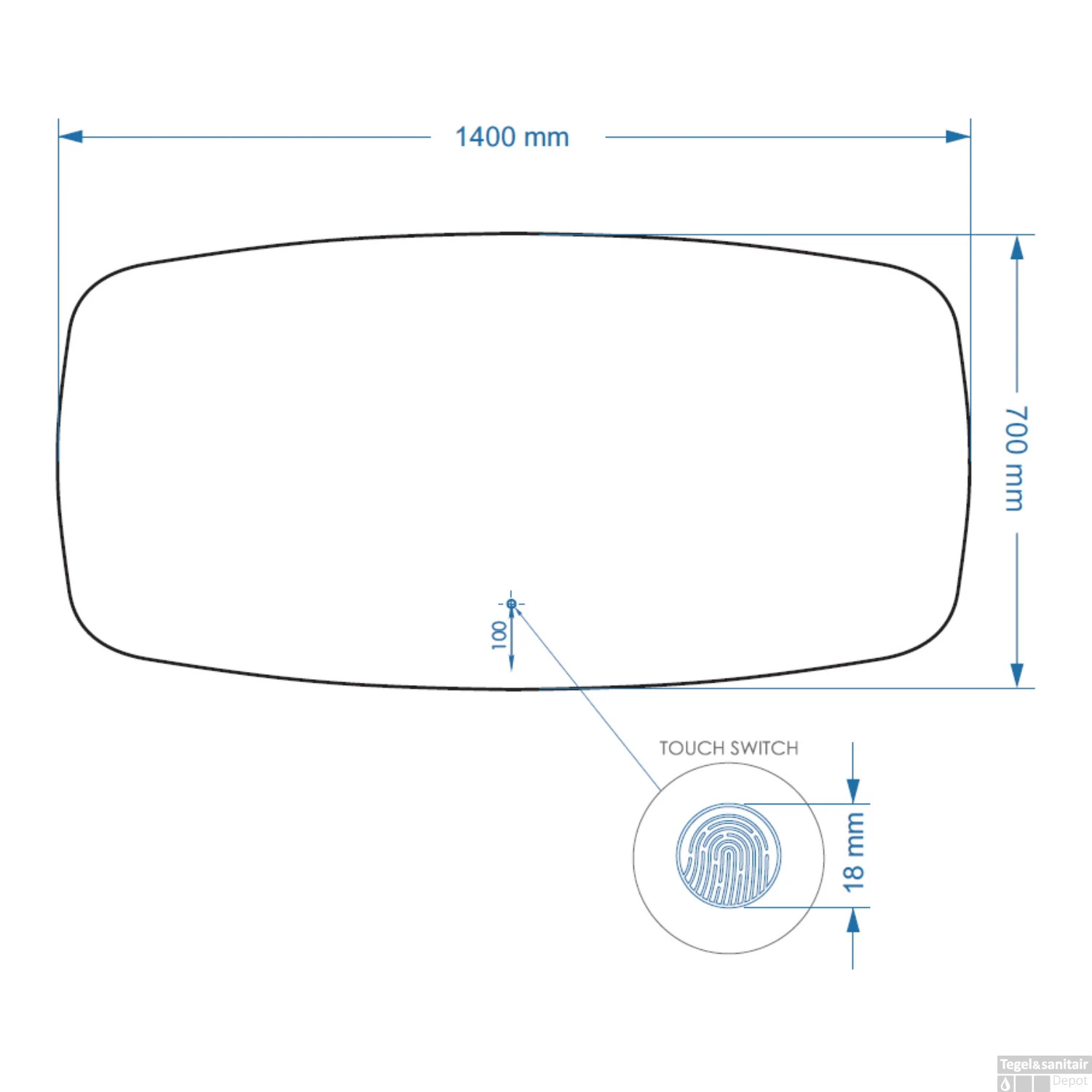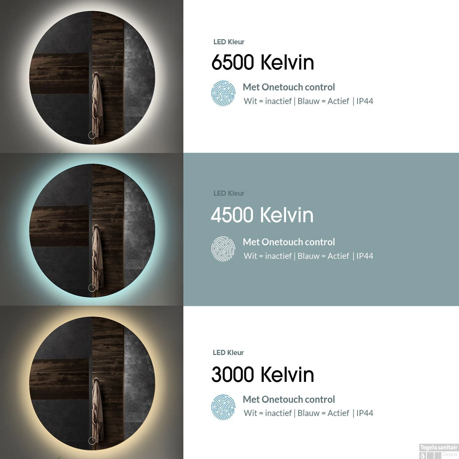 De verlichting is in 3 kleuren led van 2000 t/m 14000 Kelvin en dimbaar. Verder bevat de spiegel een touch knop waarmee u de verlichting eenvoudig kunt bedienen. Deze touch knop heeft een hoogte van 1,8 cm en zit 10 cm van de onderkant van de spiegel verwijdert.