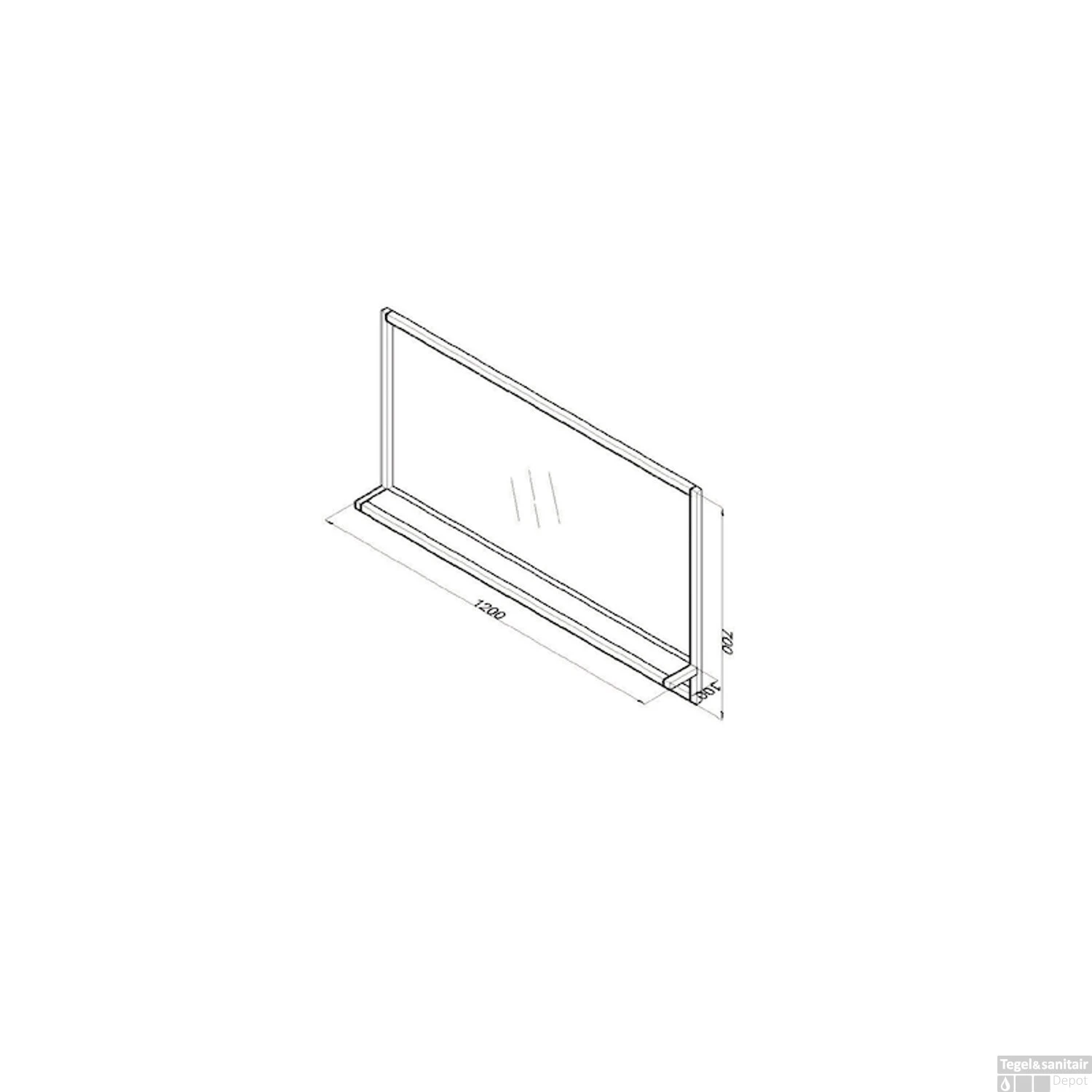 De spiegel heeft een hoogte van 70 cm en is 120 cm breed. Het planchet heeft een diepte van 10 cm. U kunt de spiegel eenvoudig bevestigen aan de muur.