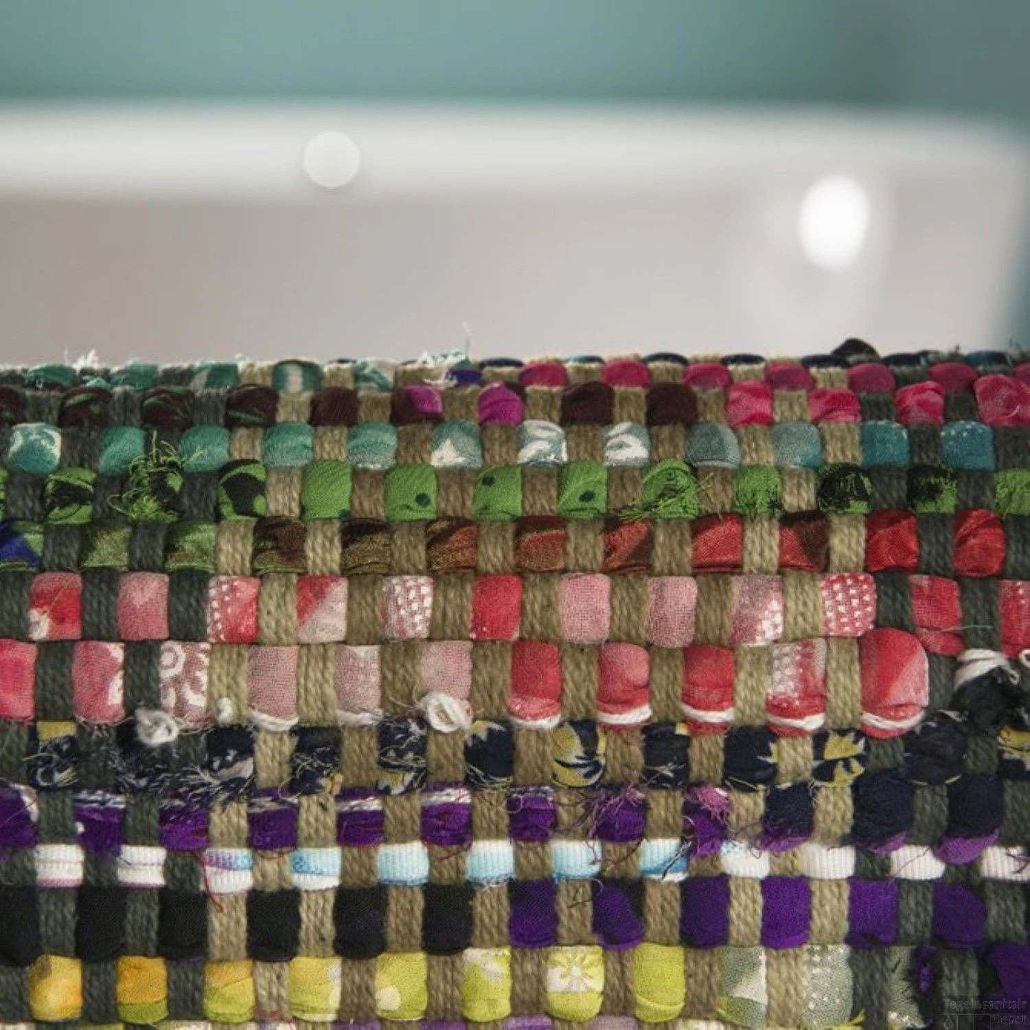 Een handgemaakte badmat van gerecyclede materialen. De Madras badmat van Sealskin is goed voor het milieu maar tegelijk ook goed voor je voeten. De verticale banen doen denken aan de strengen gekleurde parels uit het verre India. Zo breng je het vakantiegevoel elke dag in je badkamer. Door het gebruik van gerecycled materiaal is elke mat uniek. De mat is gemaakt van katoen en neemt dus goed vocht op.