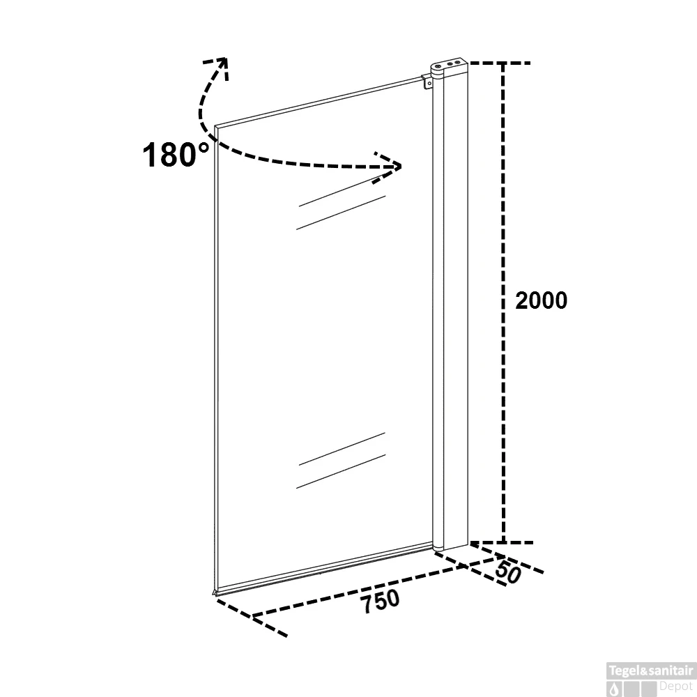 De badwand bestaat uit 1 deel en is 180 graden draaibaar. De badwand is universeel plaatsbaar, zowel links als rechts.