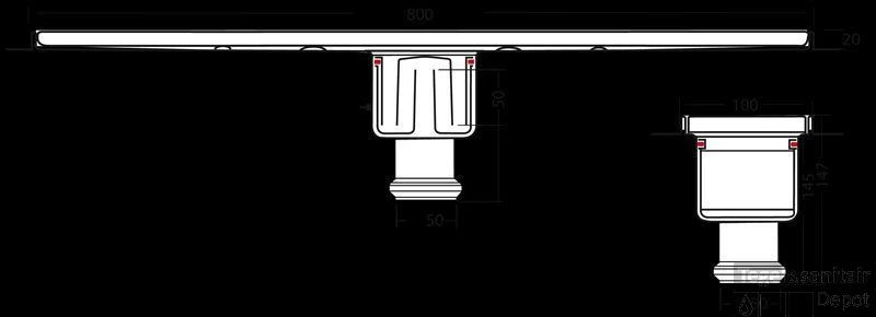 Berg Van Den Douchegoot 80 Cm. Met Flens Onder Uitlaat 50 Mm. Rvs