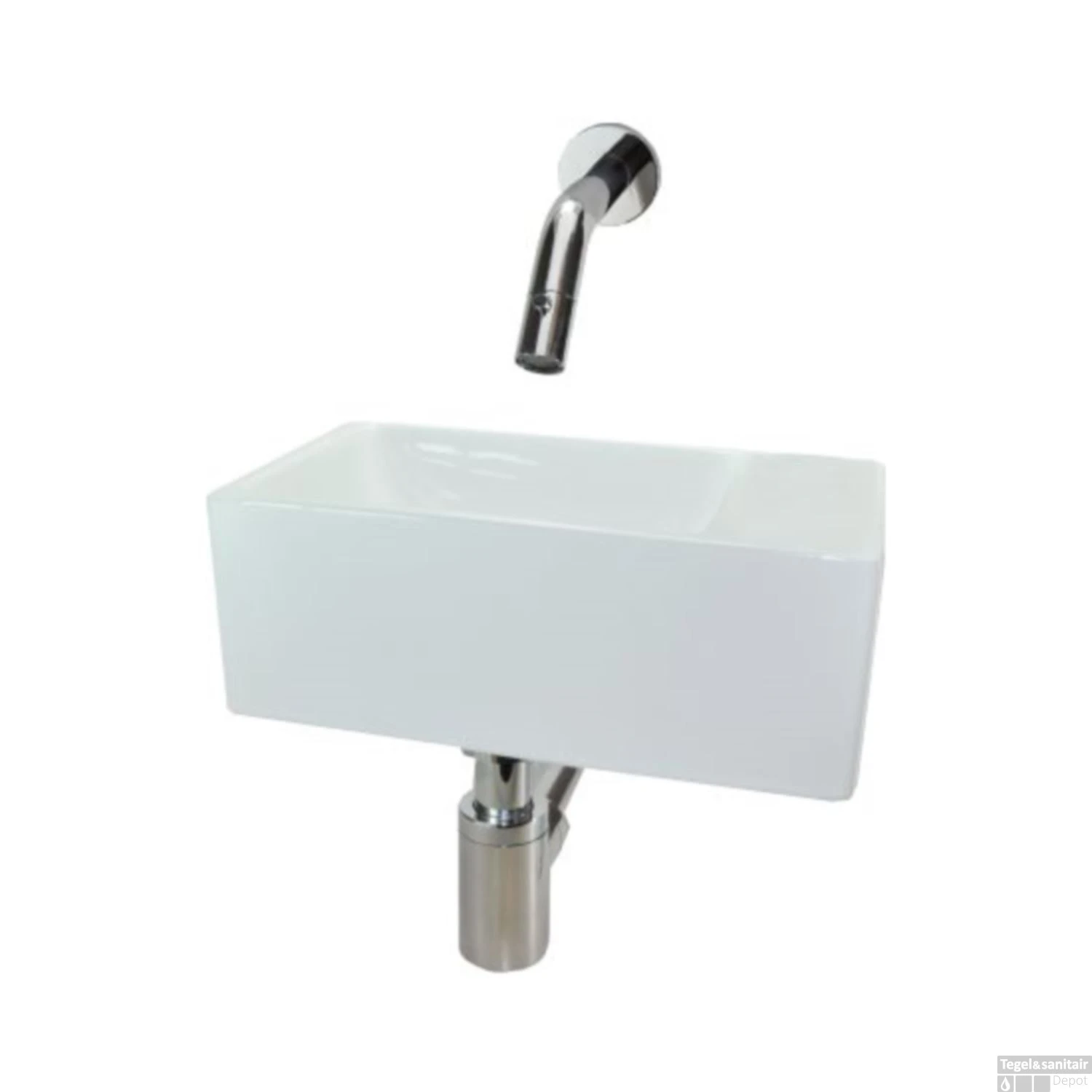 Het extra kleine fontein van keramiek heeft een moderne compacte uitstraling en past zo in ieder modern toilet. Doordat de fontein geen kraangat heeft, moet de kraan ingebouwd worden in de muur. Het fonteinbakje bevat geen overloop. Daardoor krijg het bakje een heel strak en clean uiterlijk.
