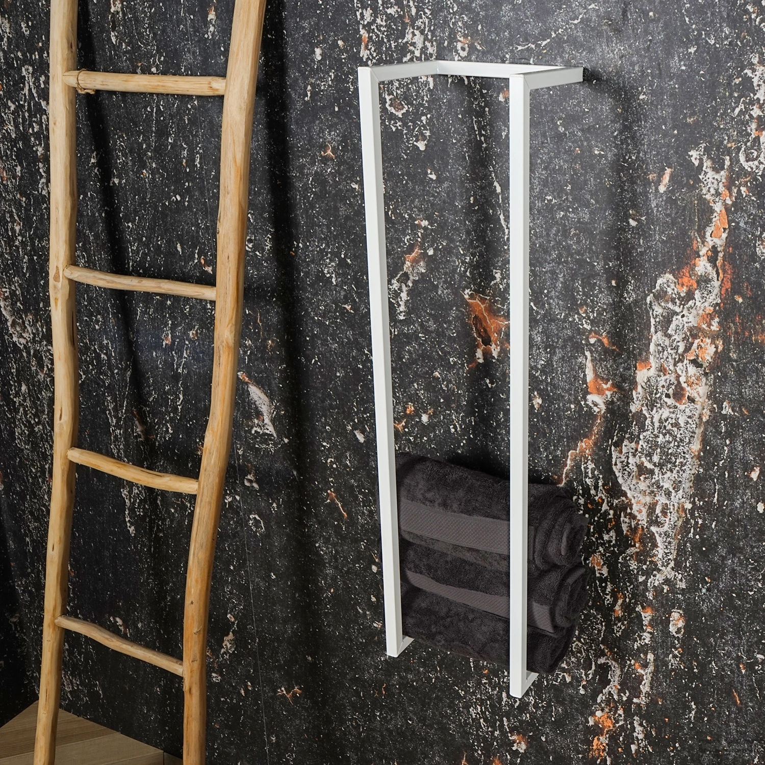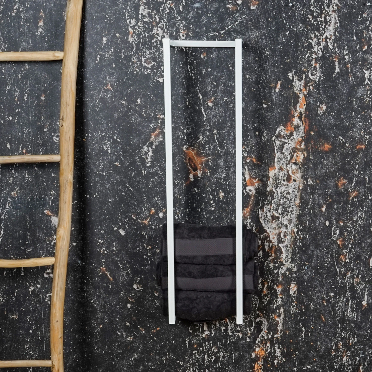 Wat een opvallend pronkstuk! Het rek is gemaakt van metaal en kent een gepoedercoate afwerking in een witte kleur. Het handdoekrek kan in een badkamer geplaatst worden, maar past ook goed op zijn plaats in een slaapkamer. Het industriële rek heeft een hoogte van 95 cm, een breedte van 25 cm en een diepte van 20 cm. De buis heeft een dikte van 1.9 cm. U kunt de handdoeken oprollen of opvouwen.