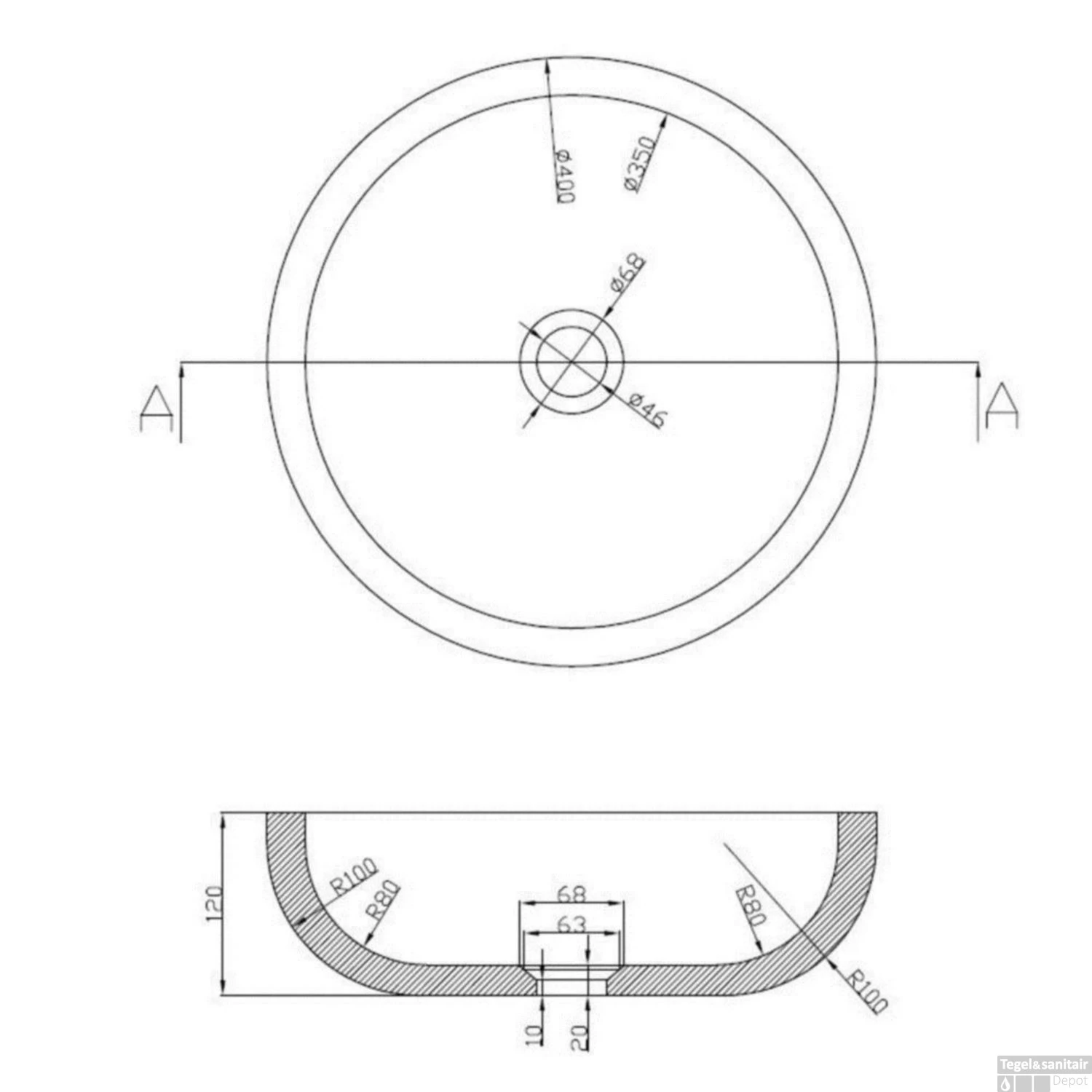 BWS Hardstenen Opzetwastafel Atomic 40 cm