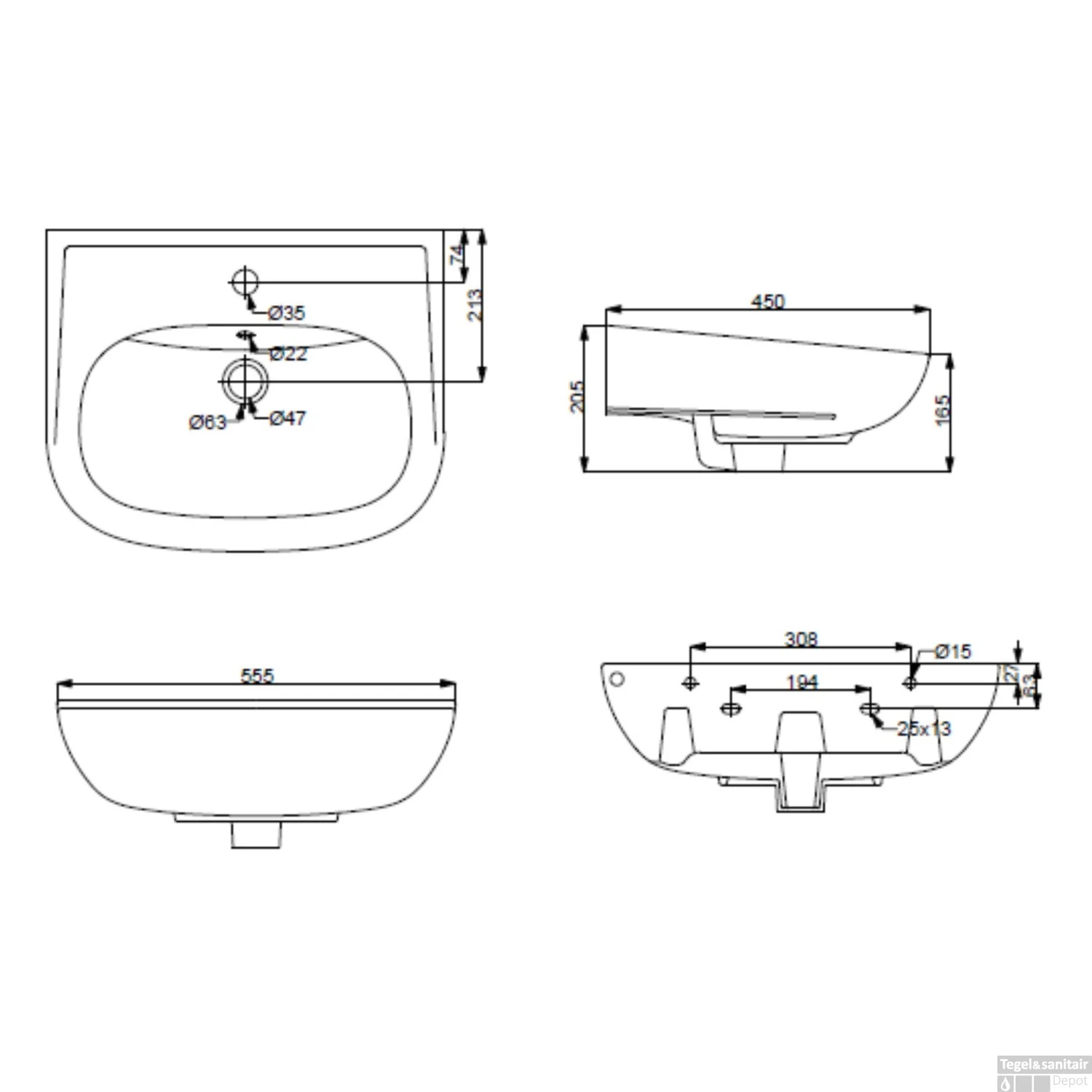 - – Exclusief kraan, sifon en waste