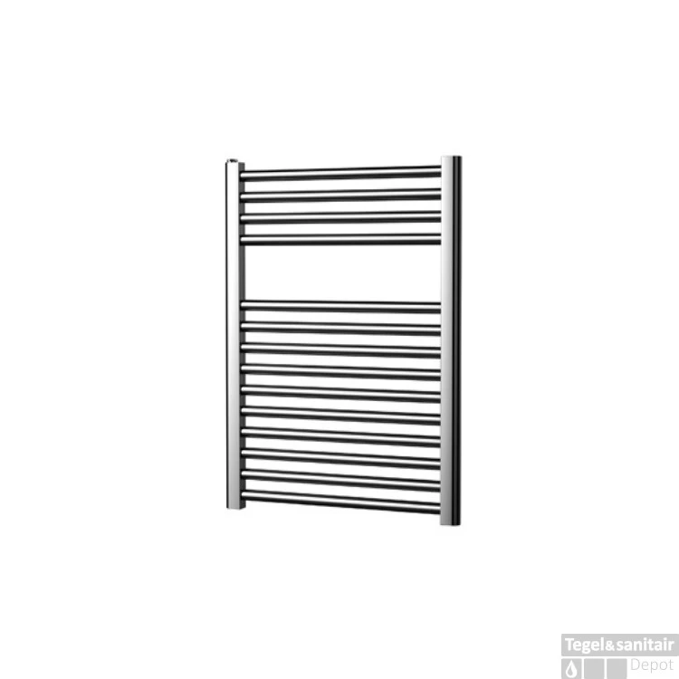 De radiator is 68,8 cm hoog en 55 cm breed. Hij heeft een vermogen van 538 Watt. Wordt geleverd met bevestigingsmateriaal, ontluchter en blindstop. Hij is van staal in de kleur chroom.