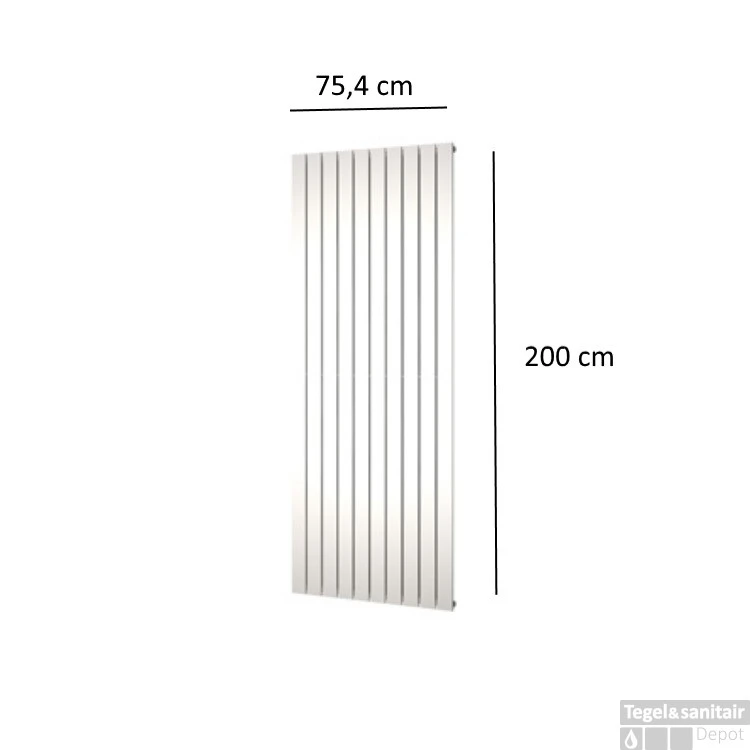 Deze designradiator van Pliegers Cavallino-serie is absoluut uniek te noemen. Het product kent een ingetogen design en beschikt over rechte lamellen en een middenaansluiting. Verder kent deze radiator een hoogte van 200 cm en een breedte van 75,4 cm. Het vermogen van de radiator bedraagt 1666 Watt.