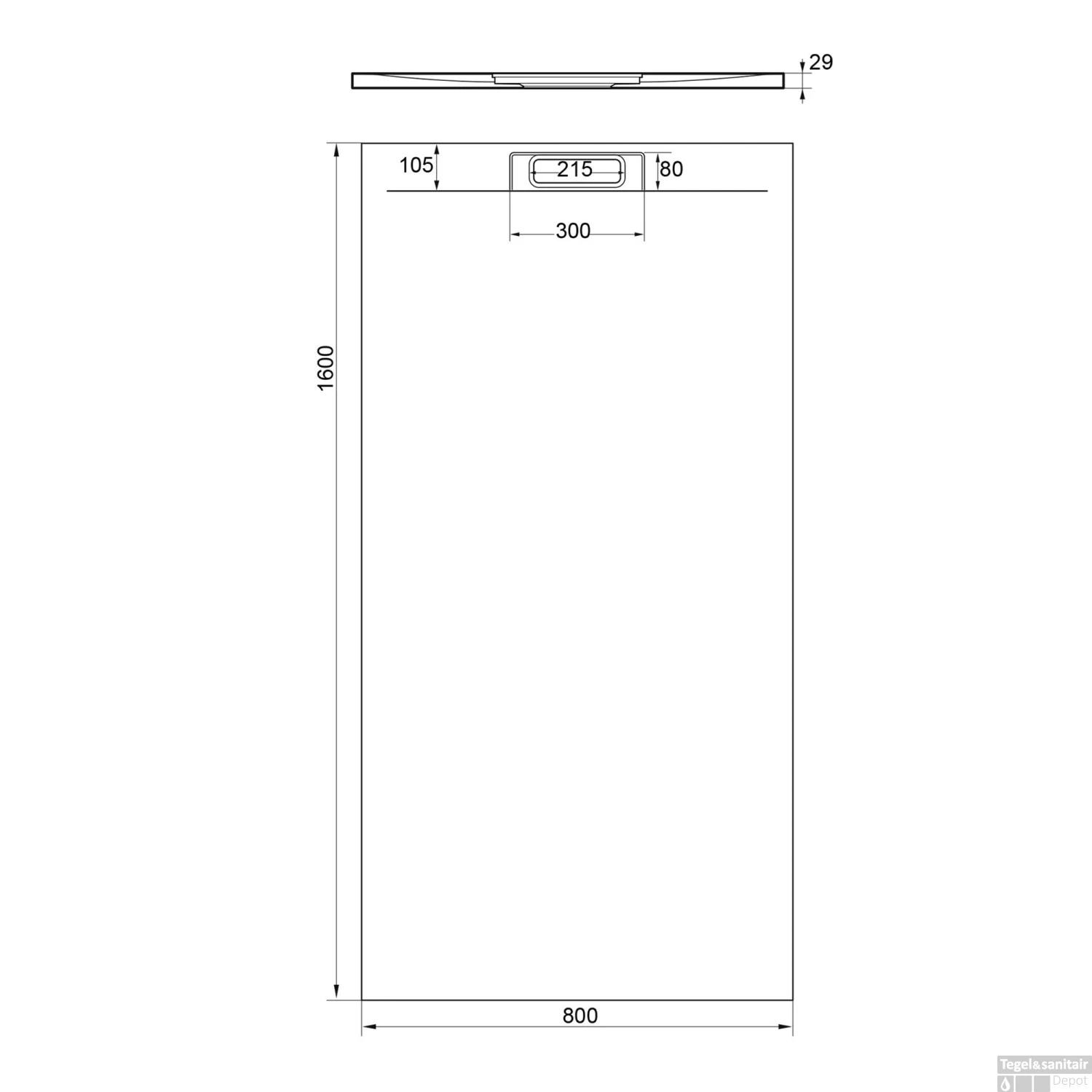 De afmetingen van de bak zijn 160 bij 80 en de hoogte van de bak is 2,9 cm. De bak is hersnijbaar.