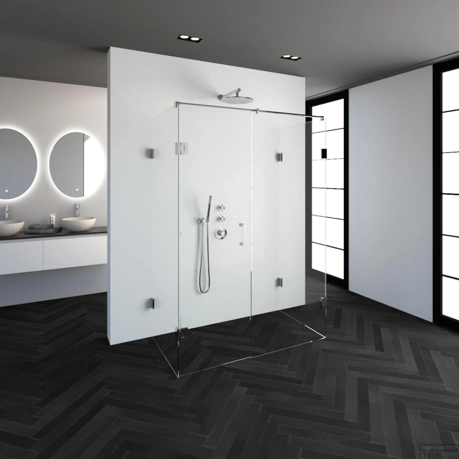 Deze complete douchecabine bestaat uit twee inloopwanden gekoppeld 80 cm, één inloopwand gekoppeld 60 cm en een draaideur 60cm met Chroom beslag. Inclusief glasbehandeling en optionele kunststof profielen. De hoogte van de douchecabine is 200 cm. De cabine is 138,8 cm breed en 77,7 cm diep. Deze douchecabine straalt luxe uit door zijn design en kleur.