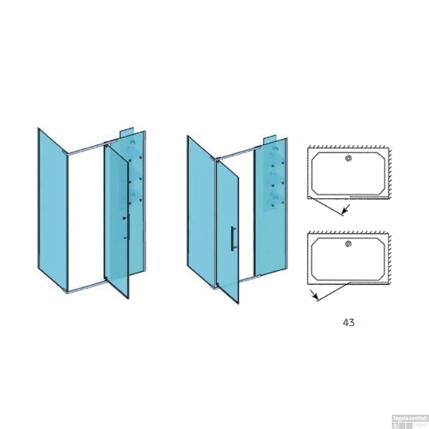 U kunt u de douchedeur van 210 cm hoogte plaatsen met een verchroomd glans aluminium muurprofiel en stabilisatiestang. De deur is zowel links als rechtsom te plaatsen, en verstelbaar van 87.5-89 cm. De doorgang van de douchedeur als de klapdeur geopend is, is maarliefst 47 cm.