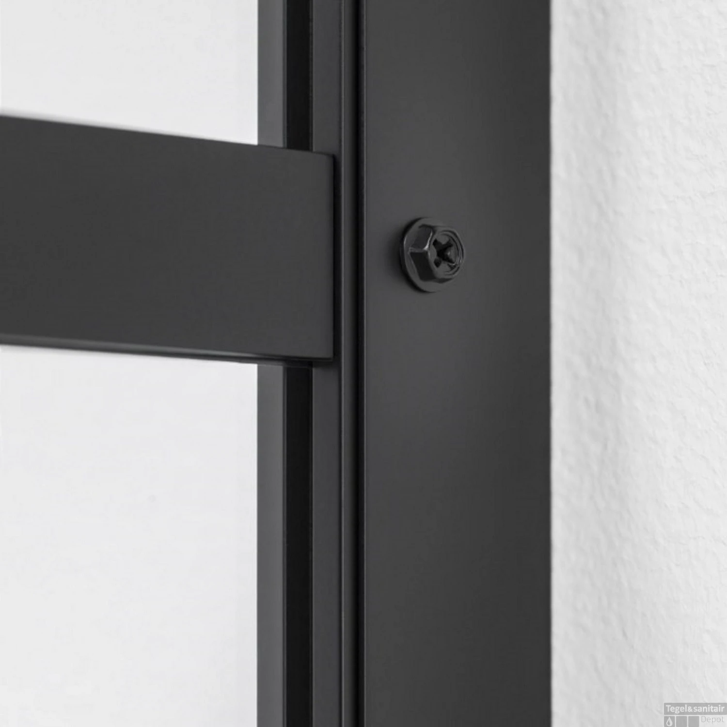 De Sealskin douchecabine van 120x100cm heeft een hoogte van maar liefst 210cm. De zwarte metalen frames zijn gebaseerd op industriële deuren. Nu natuurlijk alleen aan de buitenzijde toegepast, zodat de douche van binnen eenvoudig te onderhouden is. Maar ook de subtiel toegepaste zichtbare bouten zijn een knipoog naar de oorsprong.