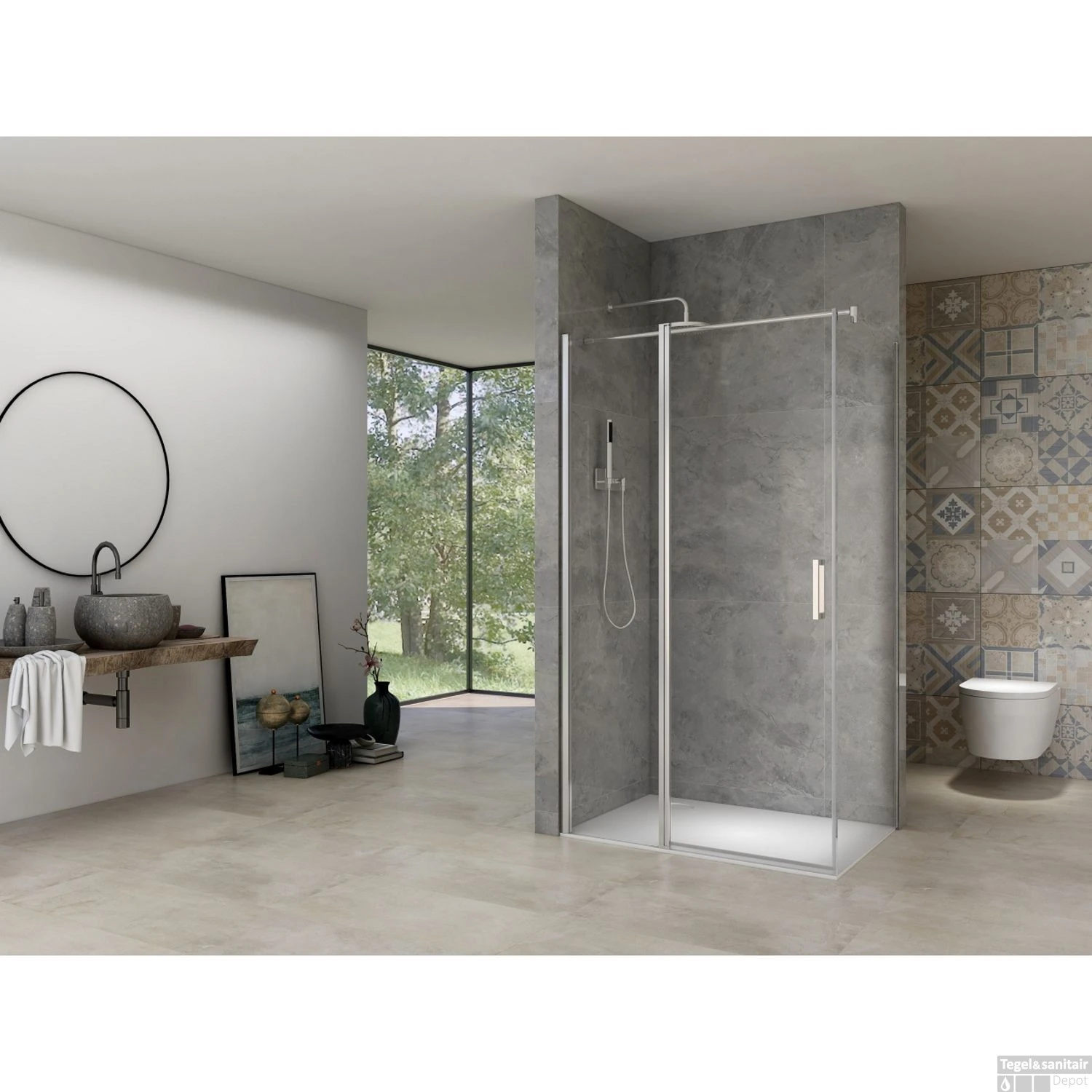 De douchecabine van Van Rijn zijn geschikt voor bijna iedere badkamer. De douchecabines hebben een modern, strak design en zijn een absolute trend. Deze douchecabine is voorzien van een aluminium profiel, roestvrij stalen grepen en het bevat een chromen afwerking. De douchecabine wordt inclusief douchedeur, vaste wand, zijwand en stabilisatiestang geleverd.