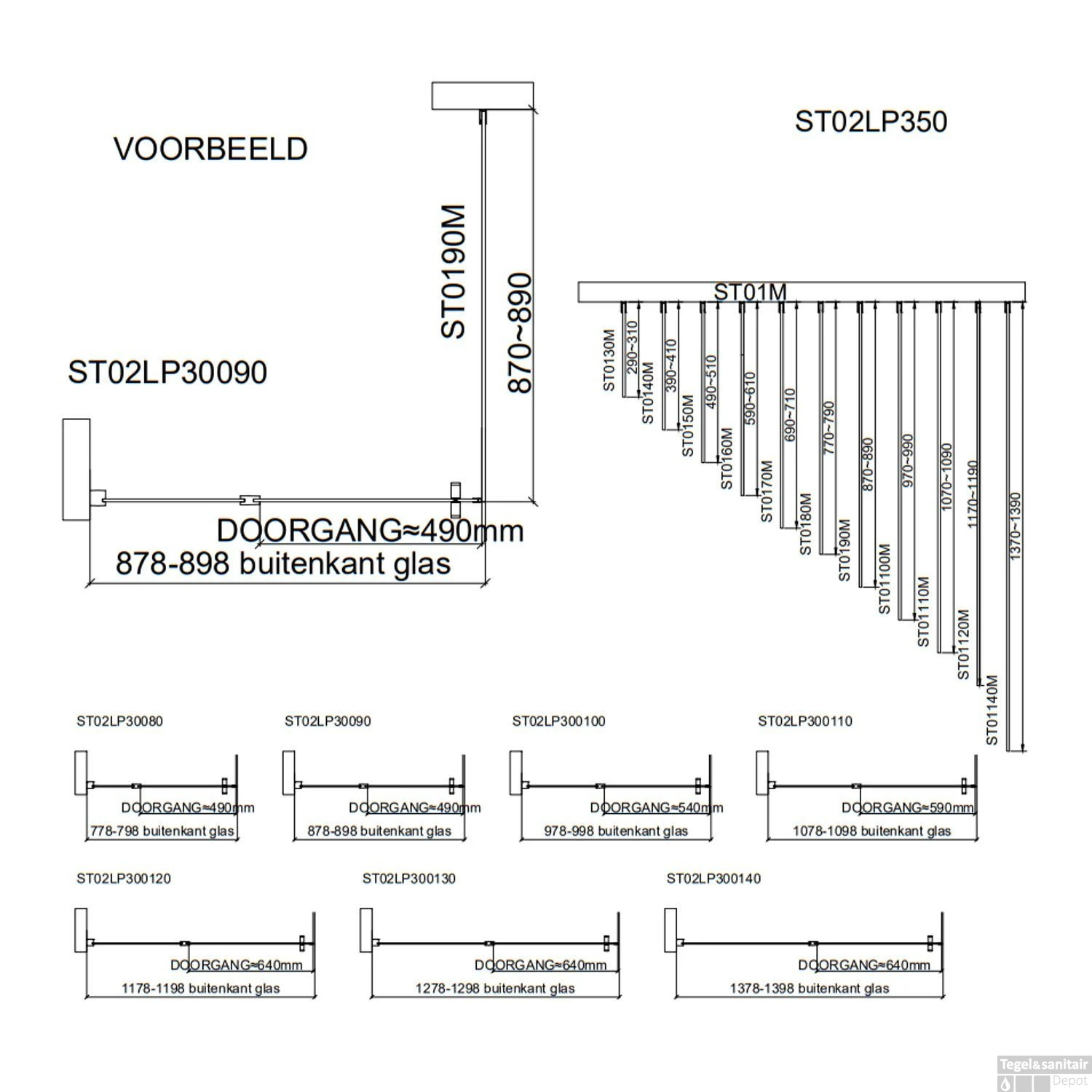 Specificaties Douchecabine Van Rijn ST02 350 Chroom: