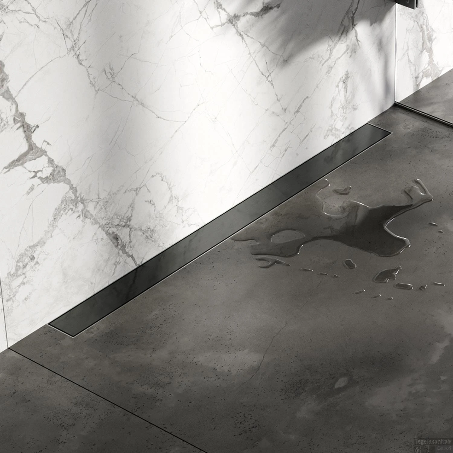 Douchegoot Brauer Geborsteld Gunmetal Muur Montage Inclusief Vloerflens 90×7 cm Zero Tegelinlegrooster Omkeerbaar