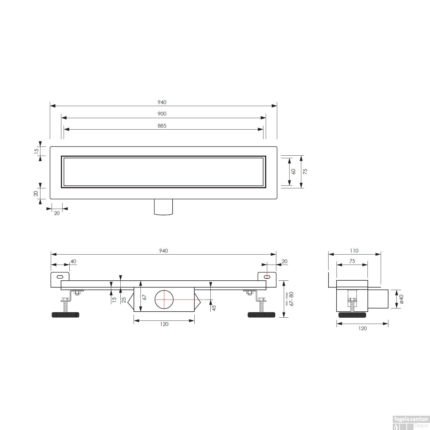 Ook wordt de douchegoot geleverd inclusief sifon (kunststof), waterdichtdoek en een sleutel om het rooster er gemakkelijk uit te halen wanneer nodig. De douchegoot wordt geleverd inclusief vloerflens, dit is de rand om het rooster heen die zorgt voor een beter afsluiting. U kunt deze douchegoot ook in hoogte naar wens afstellen door middel van de verstelbare pootjes die erbij worden geleverd.