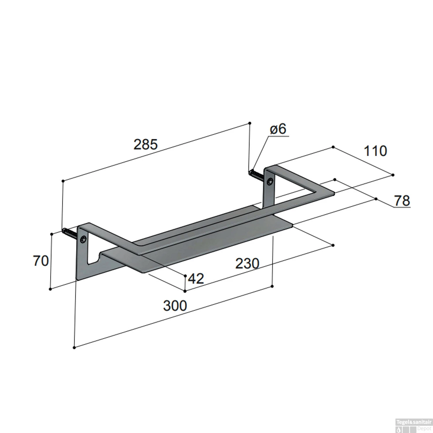 Het rek is 30 cm breed en 11 cm diep. Door de vorm is deze douchekorf overal op te hangen. Zo kunt u zelf bepalen waar u hem wilt en heeft u al uw spullen binnen handbereik. De korf is op te hangen met schroeven van 6 mm. Deze worden erbij geleverd. De H.O.H. maat is 28.5 cm.