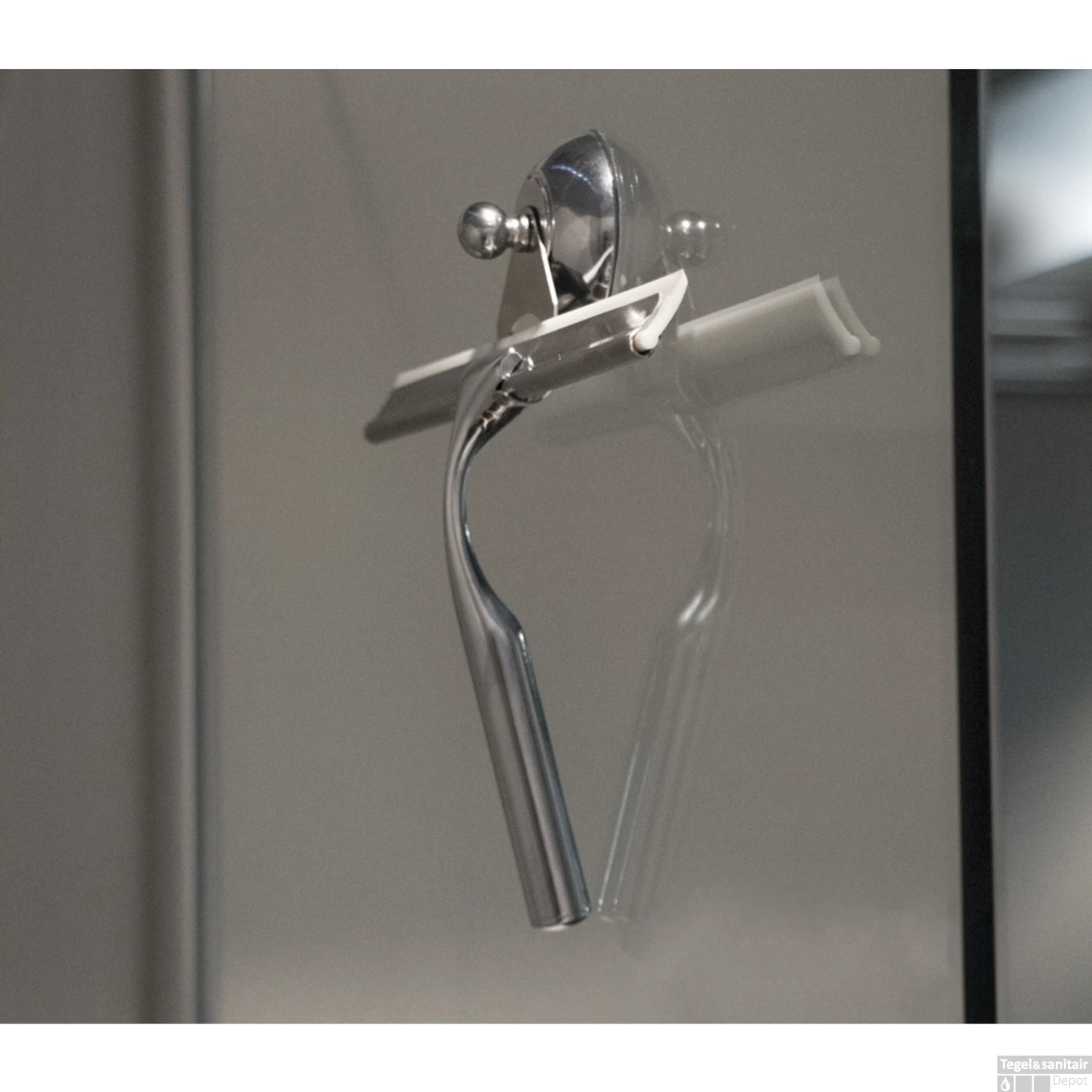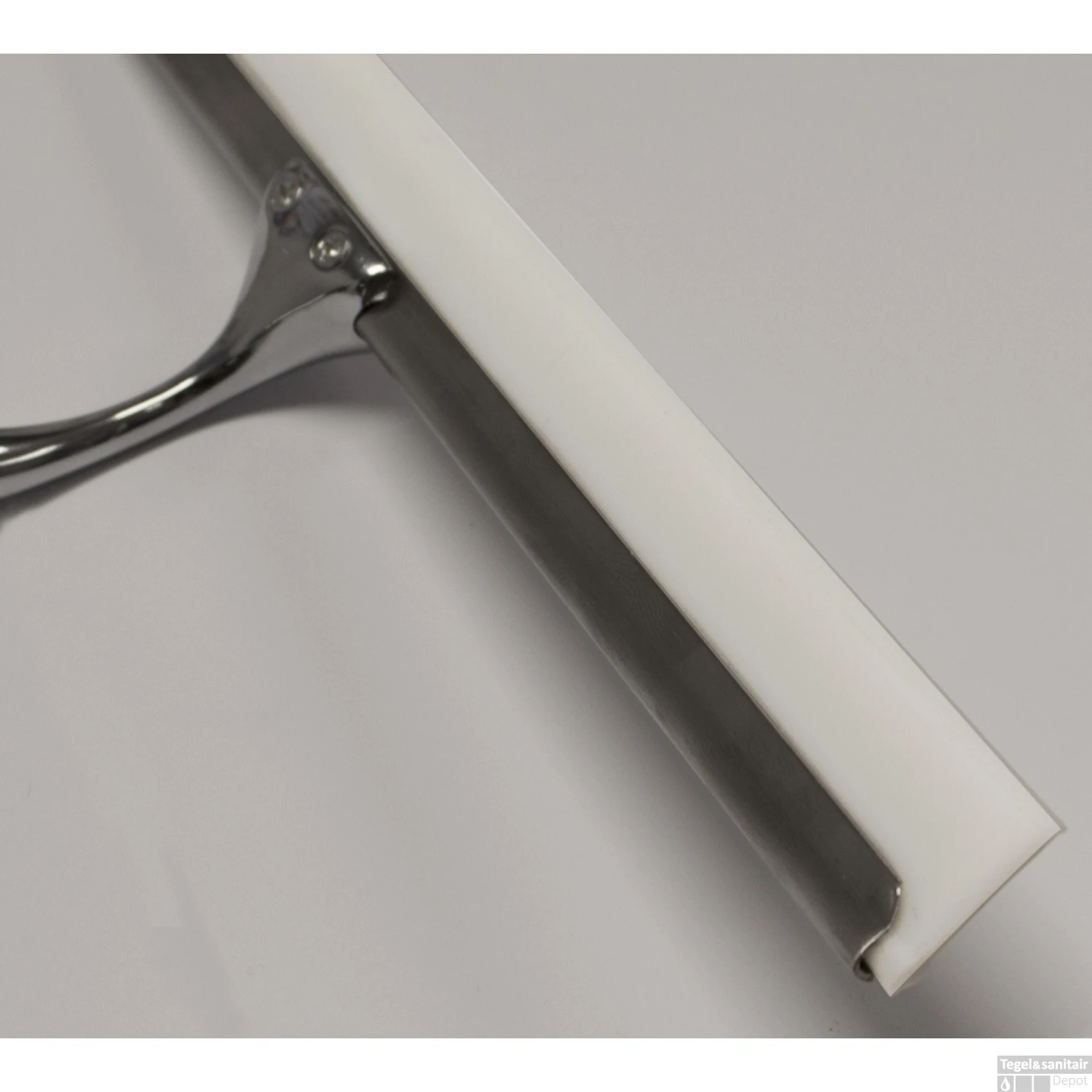 Deze luxe douchewisserset van Boss & Wessing is het ideale product voor het reinigen van uw douche, glas of keramische tegels. Het wisserblad van de wisser is wit van kleur: hierdoor laat u geen zwarte strepen achter tijdens het schoonmaken. Bovendien is het wisserblad eenvoudig te vervangen, waardoor het artikel lang mee zal gaan. De douchewisser wordt geleverd met een ophanghaak waar de wisser eenvoudig aan kan worden opgehangen.