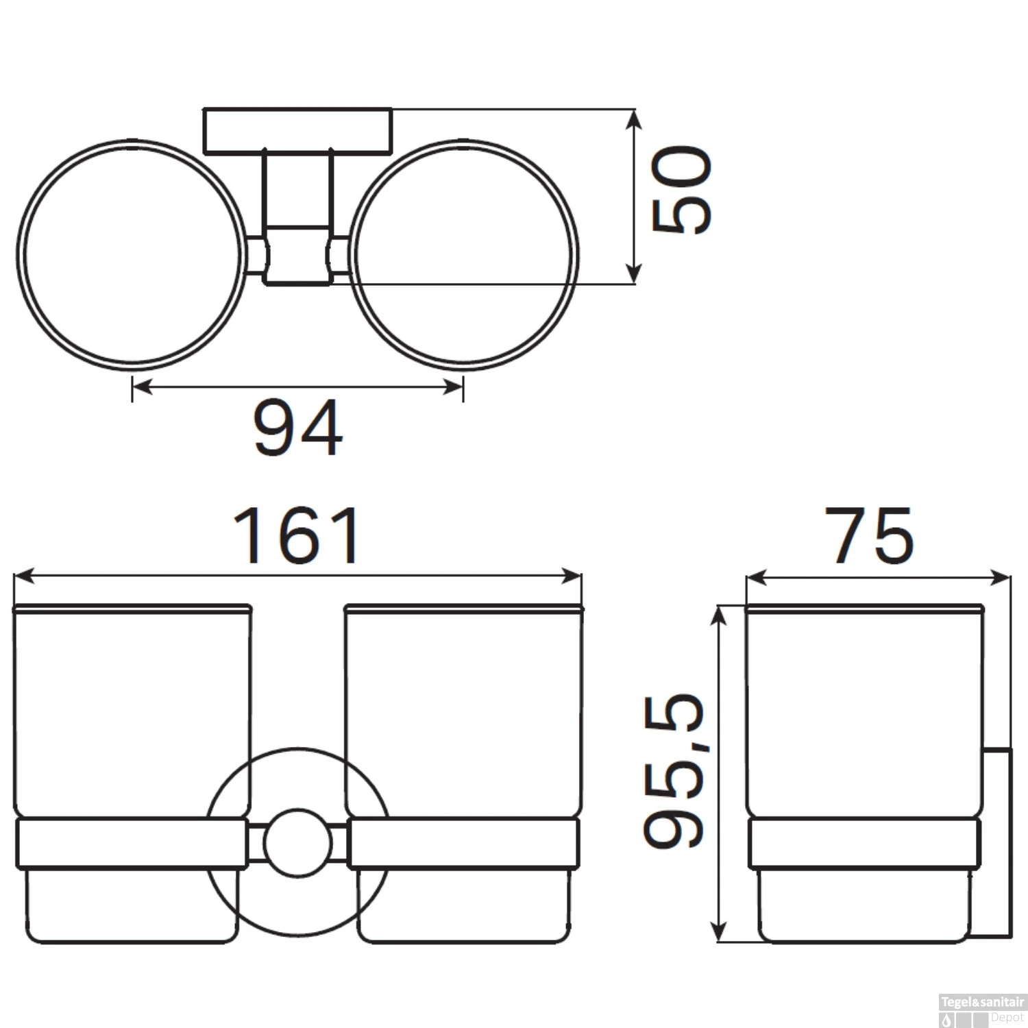 Specificaties Dubbele Bekerhouder Haceka Chroom: