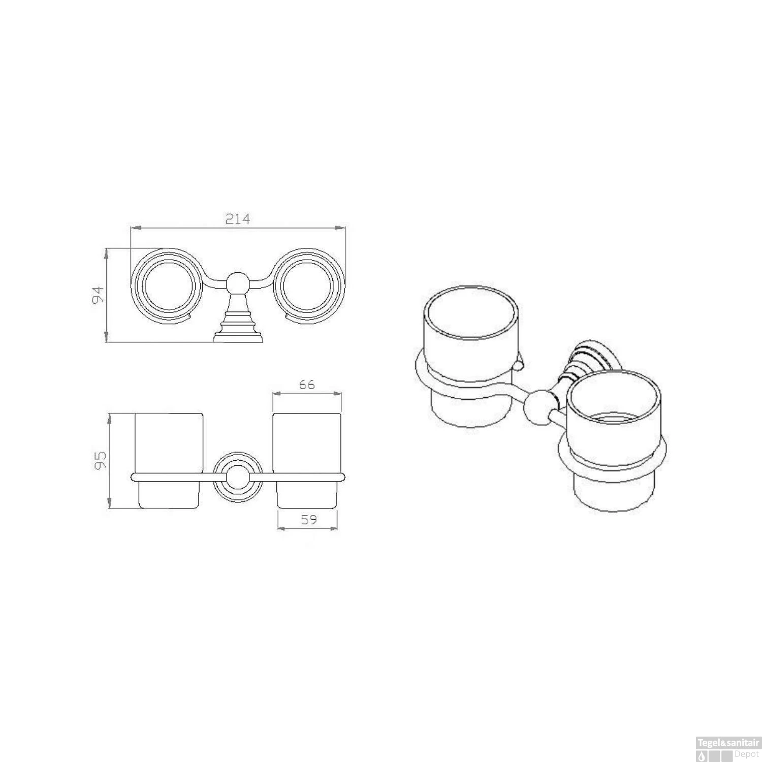 Specificaties Dubbele Bekerhouder Hangend Chroom / Melkglas Sapho Diamond: