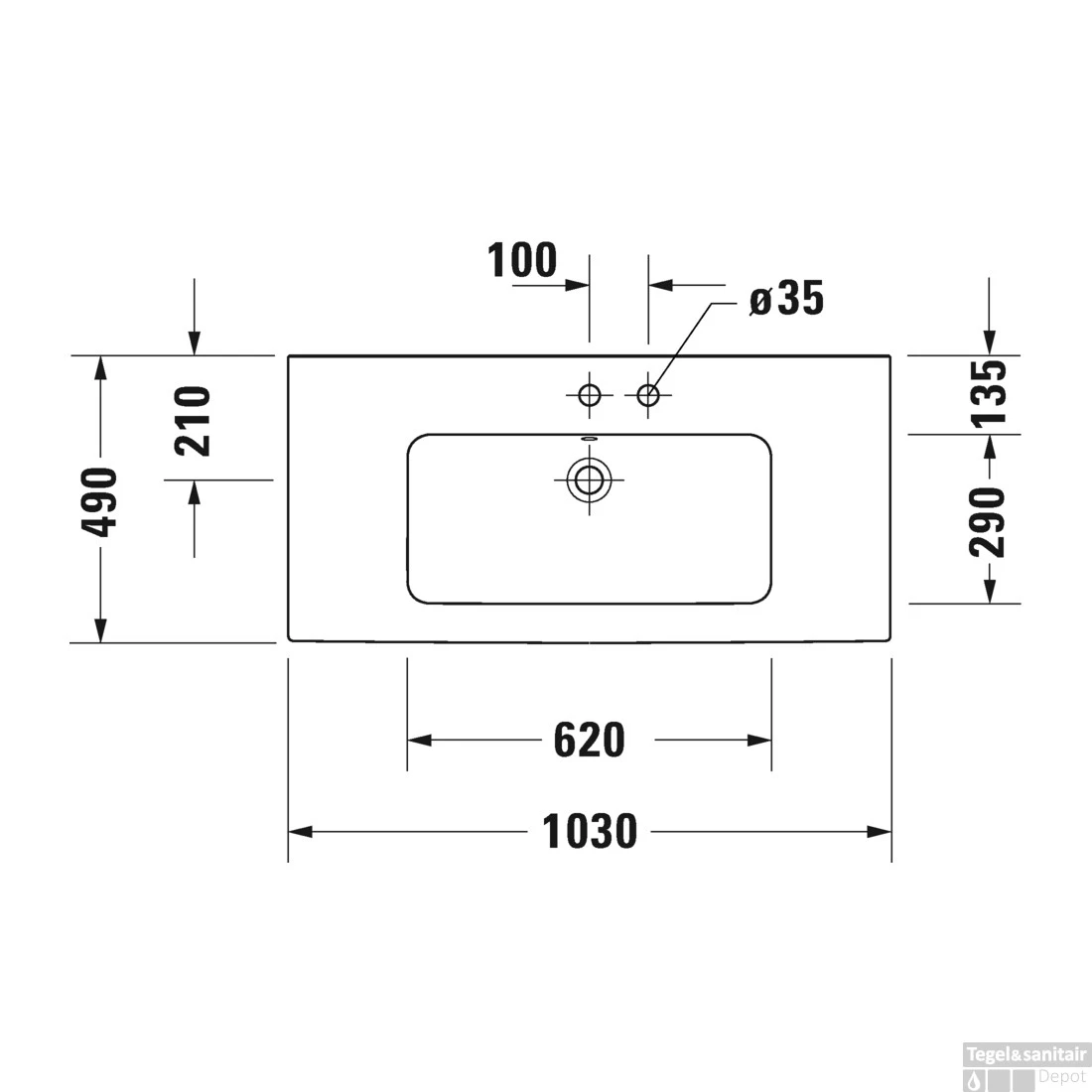 Specificaties Duravit ME By Starck Meubelwastafel 103x49x17.5 cm Keramiek Glanzend Wit :