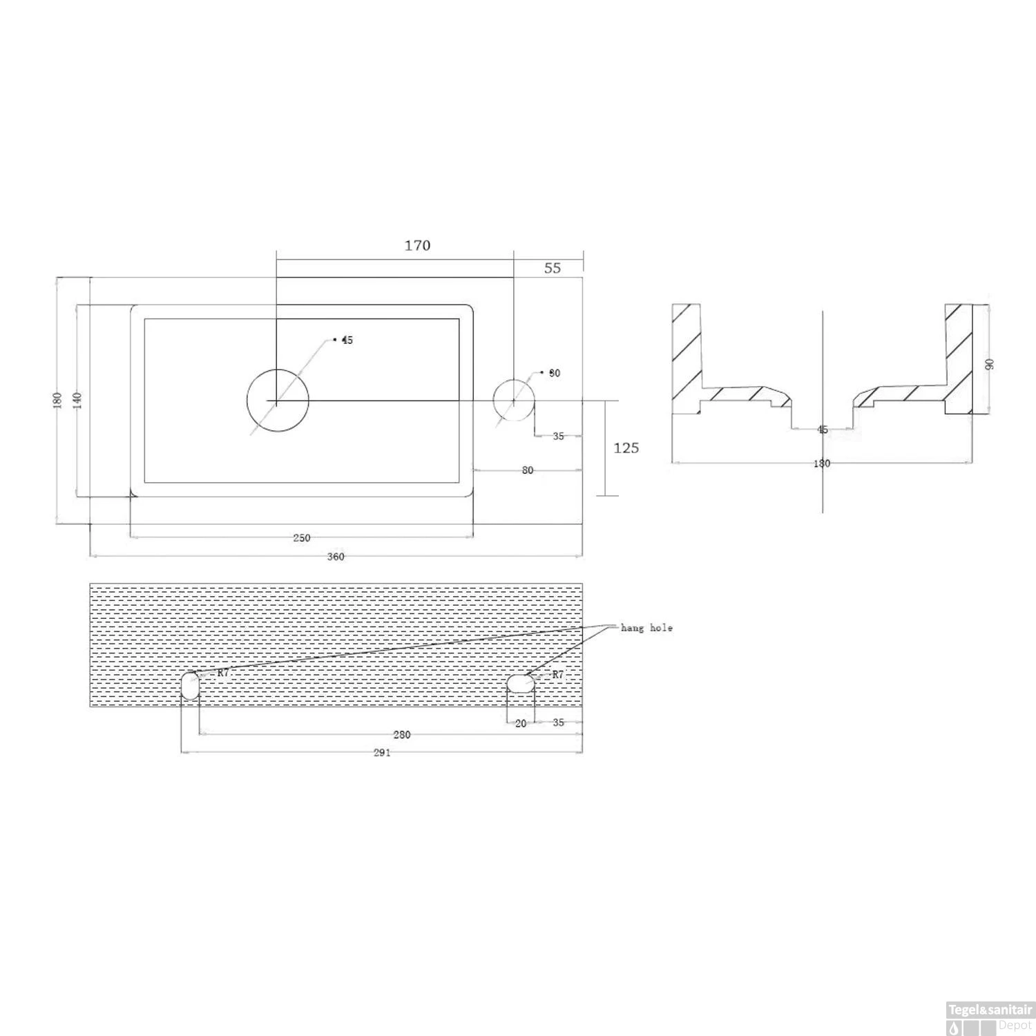 - – Exclusief kraan, sifon en afvoerplug