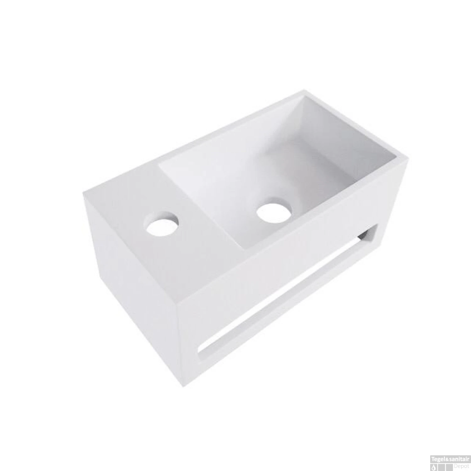 Fontein Boss & Wessing Veroni met Handdoekhouder Solid Surface Mat Wit (kraangat links)