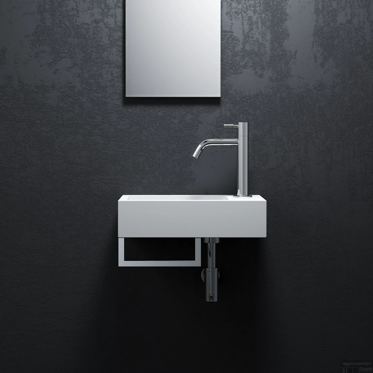 De fontein wordt standaard geleverd zonder kraangat. Indien u een kraangat wenst, kunt u door middel van de voorbewerkte rand aan de onderkant heel makkelijk een kraangat maken, er is een voorbewerkt kraangat. U kunt de fontein zowel hangend aan de muur plaatsen alswel als opzetfontein monteren. De fontein wordt geleverd met afvoerplug en dus de prachtig stijlvolle handdoekhouder in Chroom.