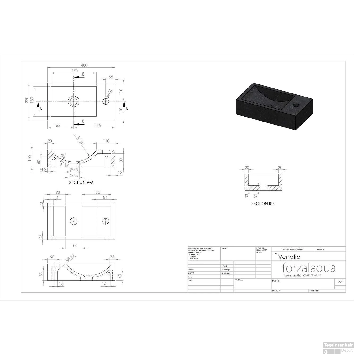 Specificaties Fontein Forzalaqua Venetia Cloudy Marmer Gezoet Met Kraangat Rechts 40x22x10 cm