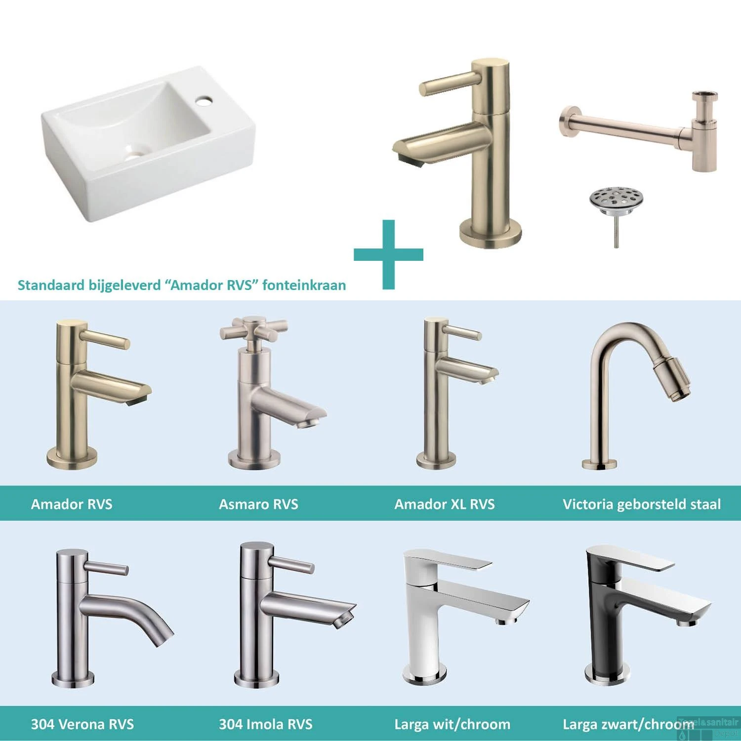 Specificaties: FonteinPack Houston Mat Wit Keramiek Rechts 37×23 cm RVS (Keuze uit 8 kranen)