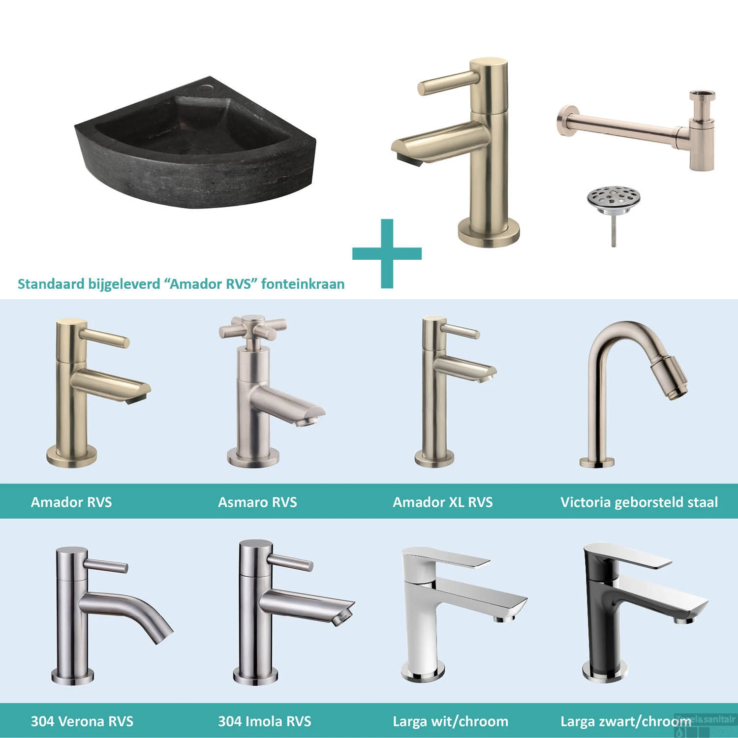 FonteinPack Natuursteen Hoek 30x30x10 cm RVS (Keuze uit 8 kranen)
