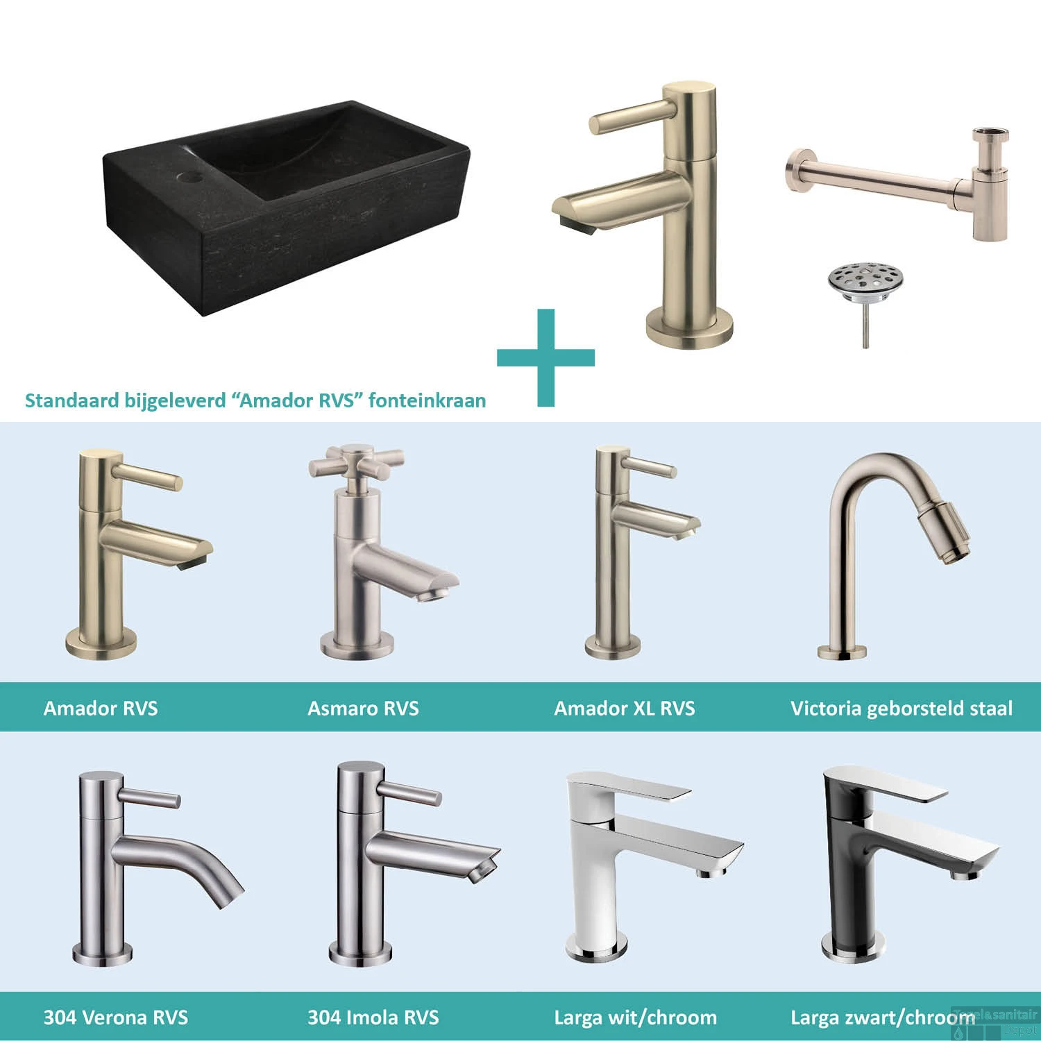 FonteinPack Recto Natuursteen Links 40x22x10 cm RVS (Keuze uit 8 kranen)