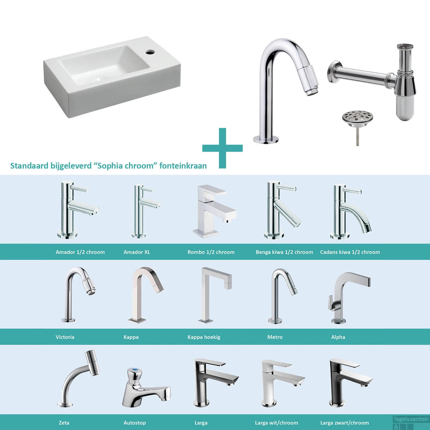 FonteinPack Rhea Keramiek Rechts 45.5x26x12 cm Chroom (Keuze uit 20 kranen)