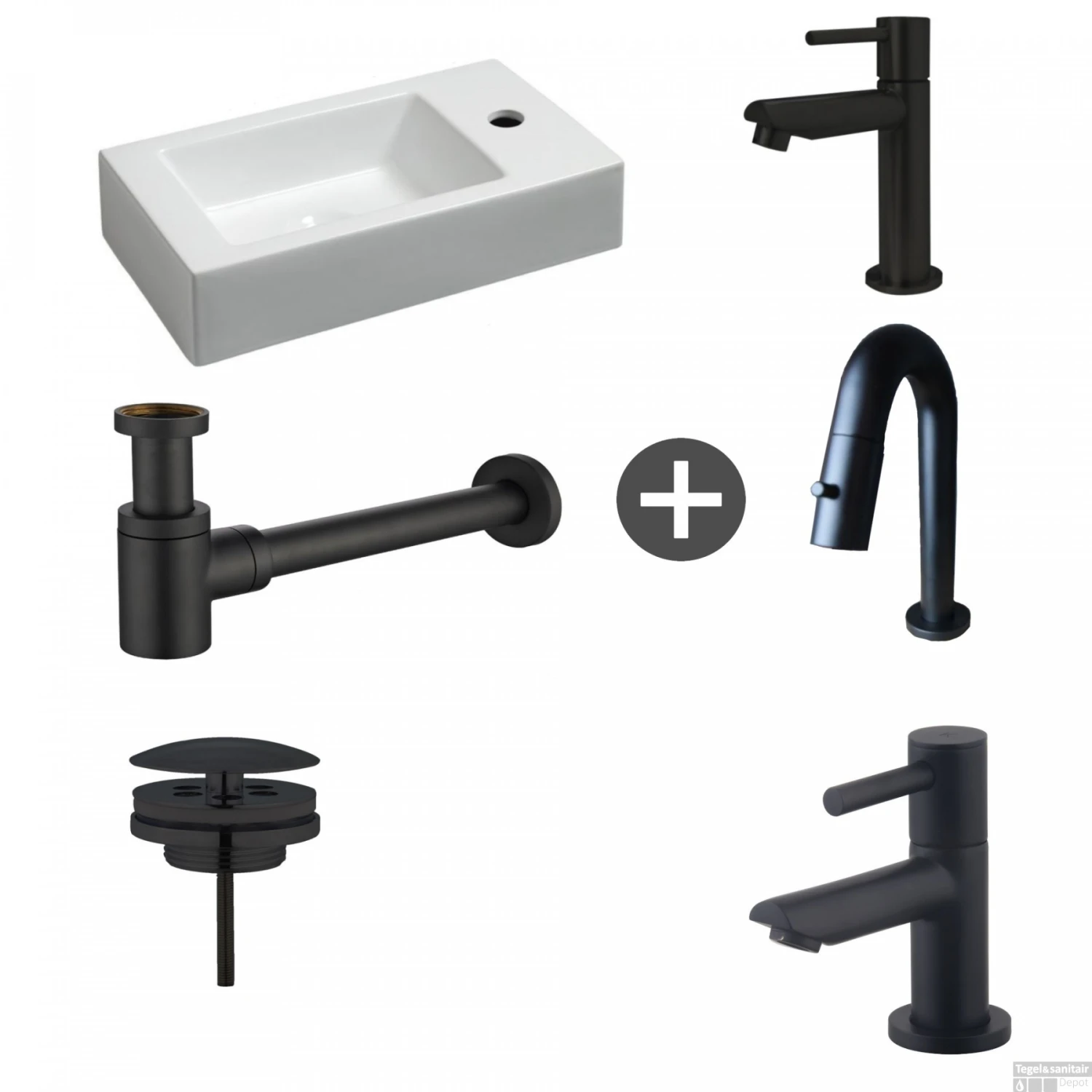 Fonteinpack Rhea Rechts Keramiek 45.5x26x12 cm Zwart (Keuze uit 4 kranen)