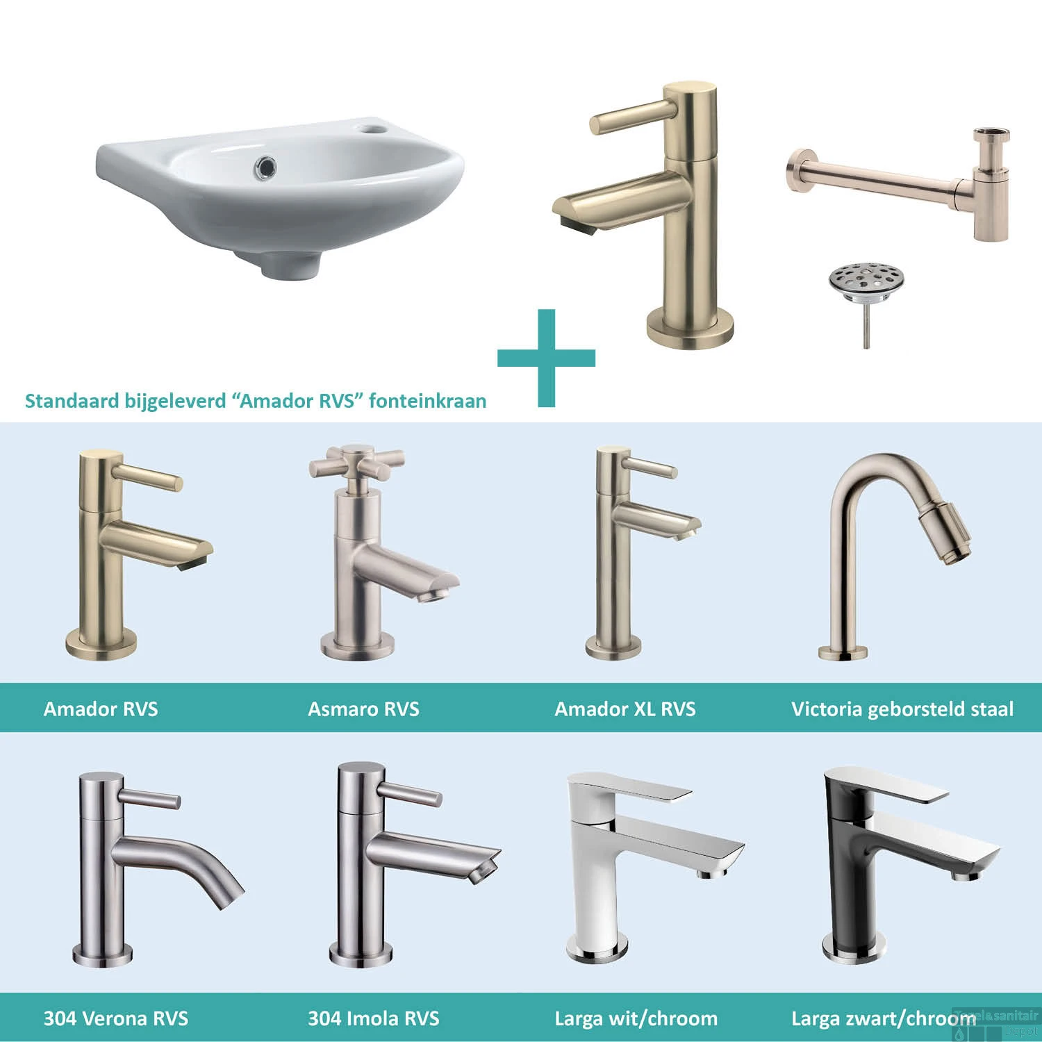 Fonteinen worden geleverd als ONE-PACK welk u een mooi prijsvoordeel oplevert. De ONE-PACK bestaat uit een fonteinkraan designsifon, niet afsluitbare fonteinplug en een bevestiging set.