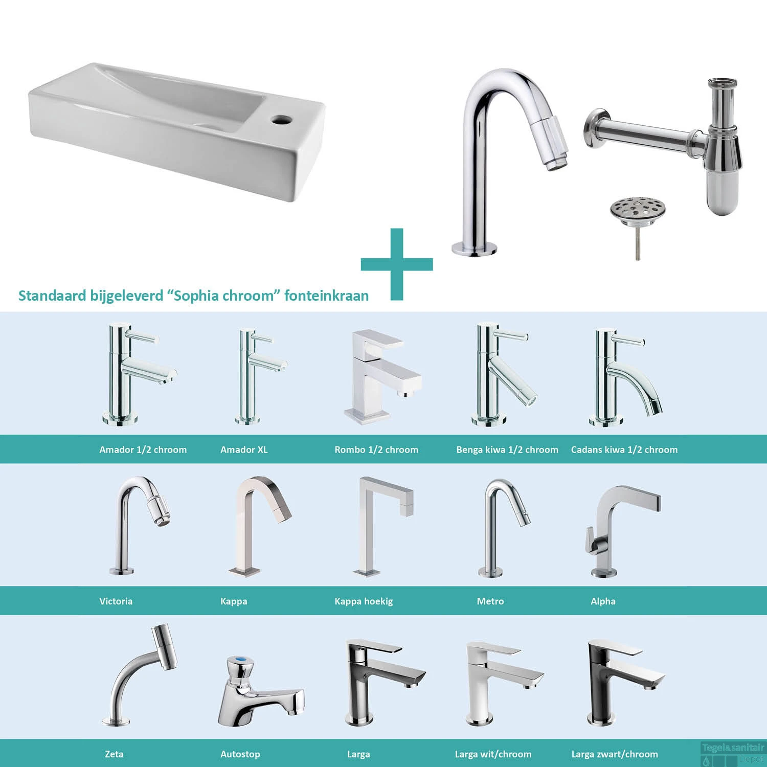 FonteinPack Trim Mini Keramiek 38x14x8 cm Rechts Chroom (Keuze uit 20 kranen)