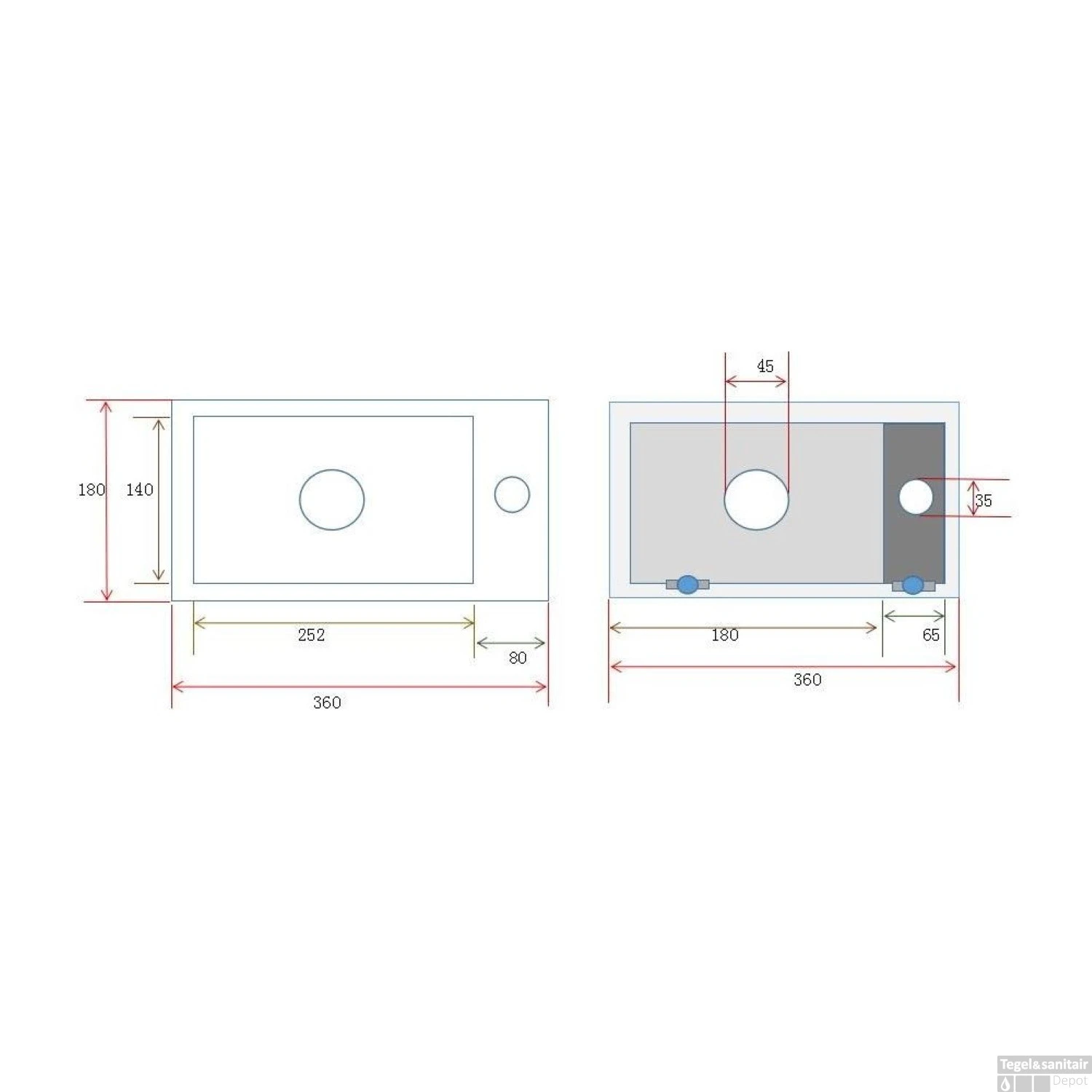 Let op: Het kraangat van deze fontein zit aan de rechterkant. De set is ook verkrijgbaar met het kraangat aan de linkerkant.