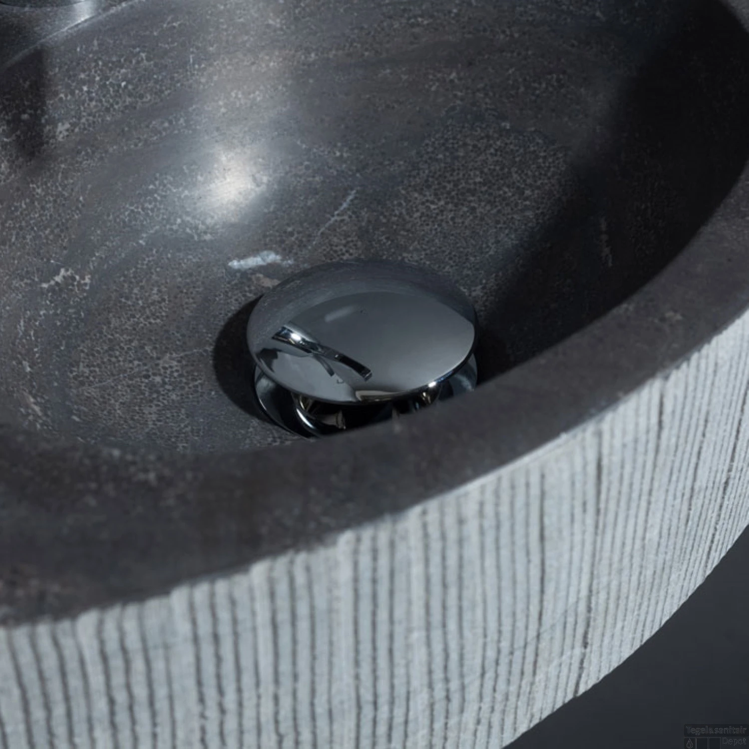 Deze prachtige natuursteen fontein is een lust voor het oog en een toevoeging voor badkamer of toilet. De fontein wordt geleverd met kraangat waardoor u een opbouwkraan naar keuze kunt toevoegen aan de fontein. De wastafel is gefrijnd, dat is een sierbewerking waarbij er groeven de wastafel worden toegevoegd, zoals te zien is aan de zijkanten. De fontein heeft een grijze kleur met antraciete tinten en een afmeting van 30x30x10 cm.
