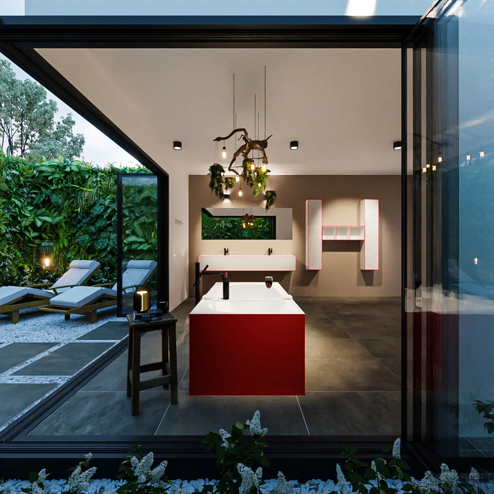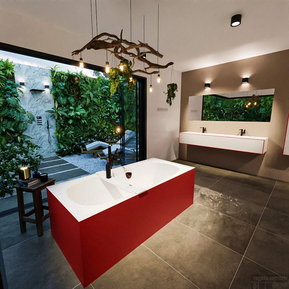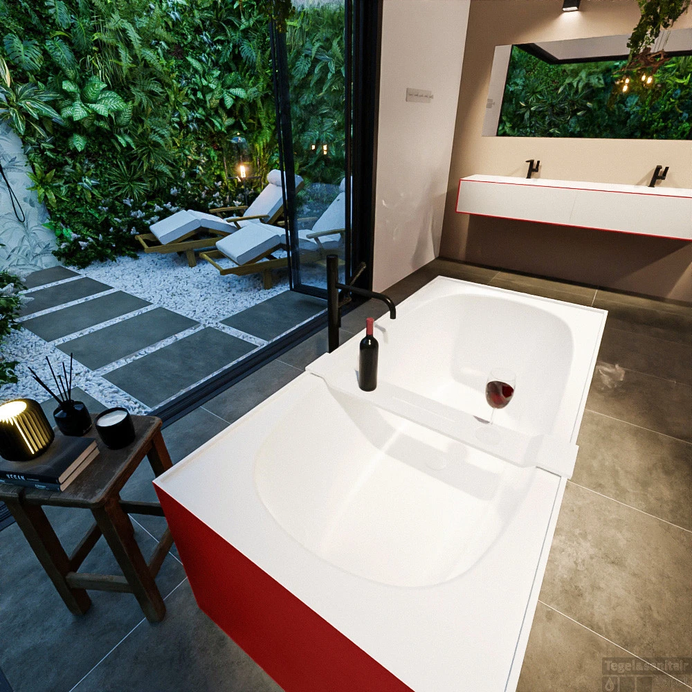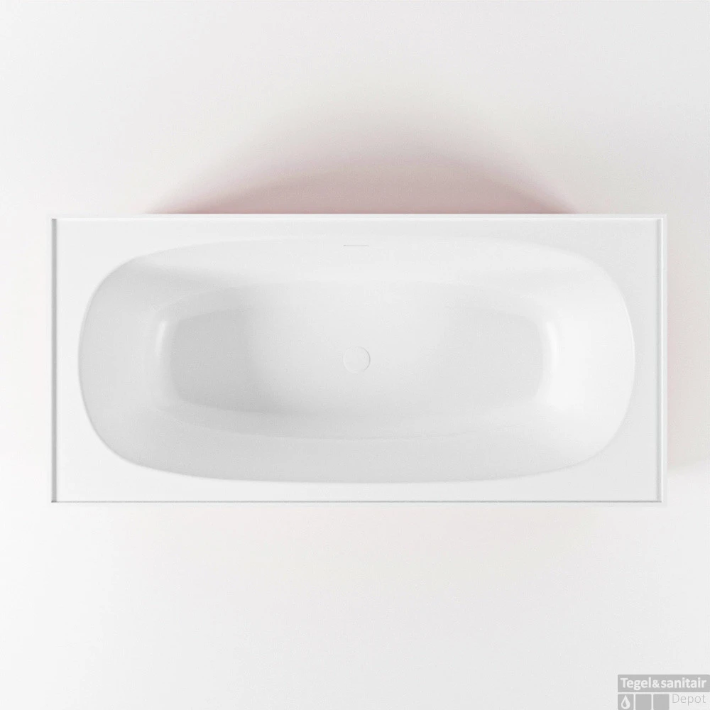 Het heeft strakke lijnen rondom waardoor het bad zowel vrijstaand, half vrijstaand als in een hoek te plaatsen is.Deze prachtige badkamer opstelling is gecombineerd met de serie lagom. Dit is een volledig Solid Surface badmeubel en kolomkast die qua kleur precies is af te stemmen op uw bad.