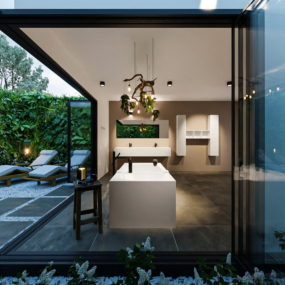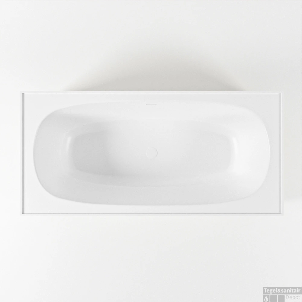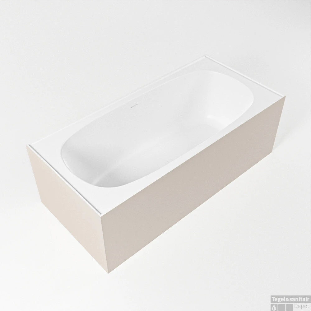 Het heeft strakke lijnen rondom waardoor het bad zowel vrijstaand, half vrijstaand als in een hoek te plaatsen is.Deze prachtige badkamer opstelling is gecombineerd met de serie lagom. Dit is een volledig Solid Surface badmeubel en kolomkast die qua kleur precies is af te stemmen op uw bad.