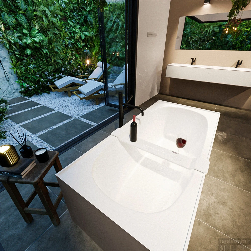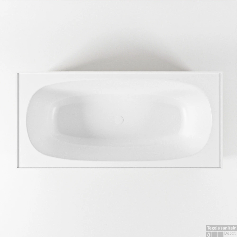 Het heeft strakke lijnen rondom waardoor het bad zowel vrijstaand, half vrijstaand als in een hoek te plaatsen is.Deze prachtige badkamer opstelling is gecombineerd met de serie lagom. Dit is een volledig Solid Surface badmeubel en kolomkast die qua kleur precies is af te stemmen op uw bad.