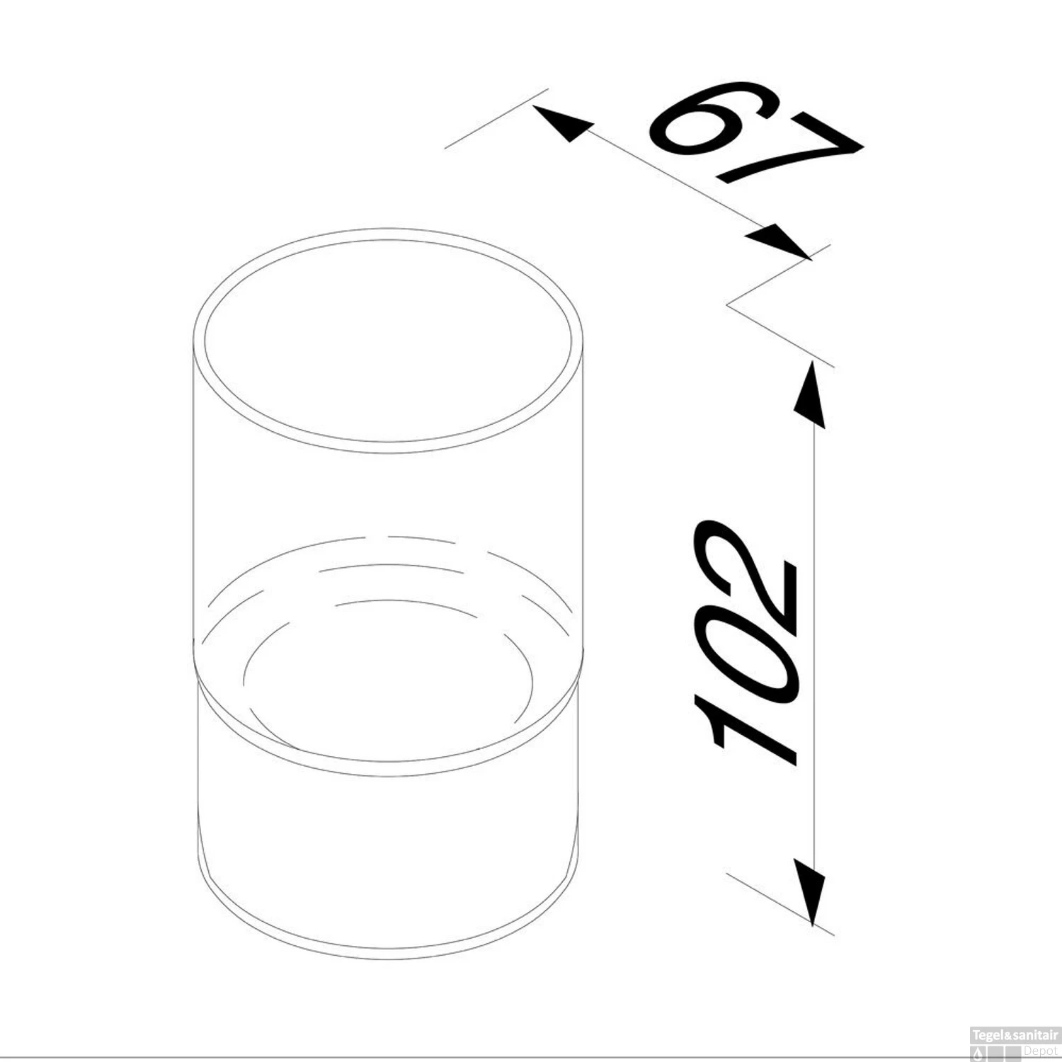 De houder met glas is 10,2 cm hoog en 6,7 cm breed. De houder is van messing afgewerkt met glanzend chroom.