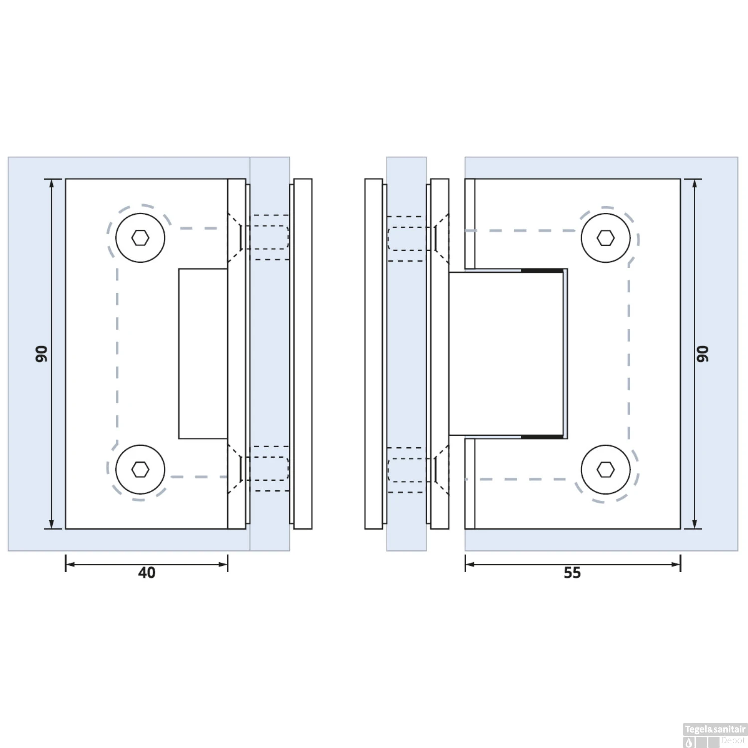 Glasscharnier Just Creating 90 Graden 2 Stuks t.b.v. W2 Gunmetal