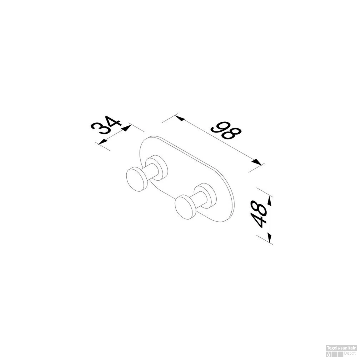 De handdoekhaak is 9,8 cm breed, 4,8 cm hoog en 3,4 cm diep. Hij is van messing in de kleur zwart.