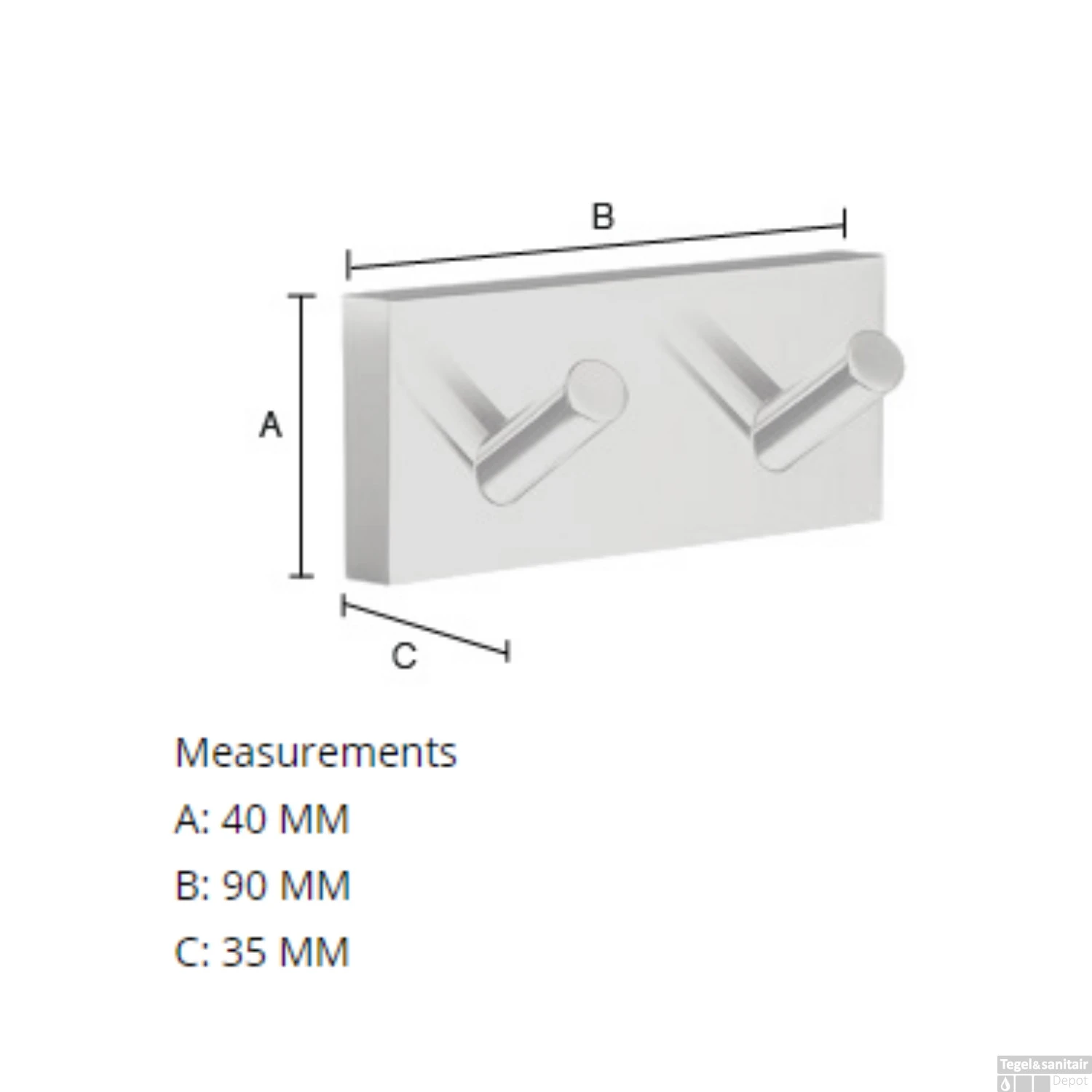 Deze chromen hakenset van Smedbo House wordt geleverd met dubbele haak en is ideaal voor een handdoek en/of badjas. De haak is 9 cm breed, 4 cm hoog en een diepte van 3,5 cm. Dit product kan worden bevestigd met bijgeleverde schroeven of u kunt kiezen voor een montagelijm oplossing (niet meegeleverd).